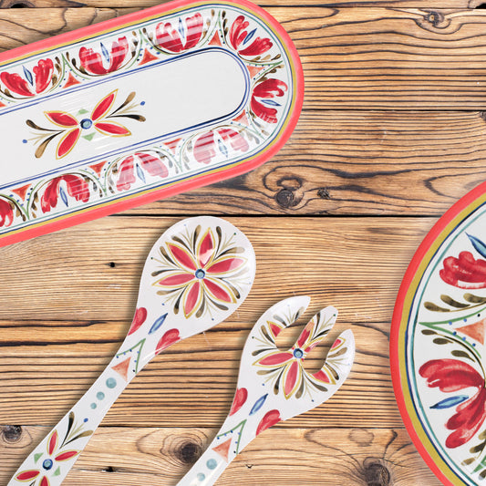 Mediterranean Melamine Rectangular Handled Tea Serving Tray