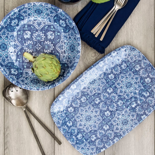 Inspired by textiles, the Atlantic Blue range brings a vintage feel to the dinner table. And to make a more sleek feel, add the Potter's Reactive Glaze to this range.