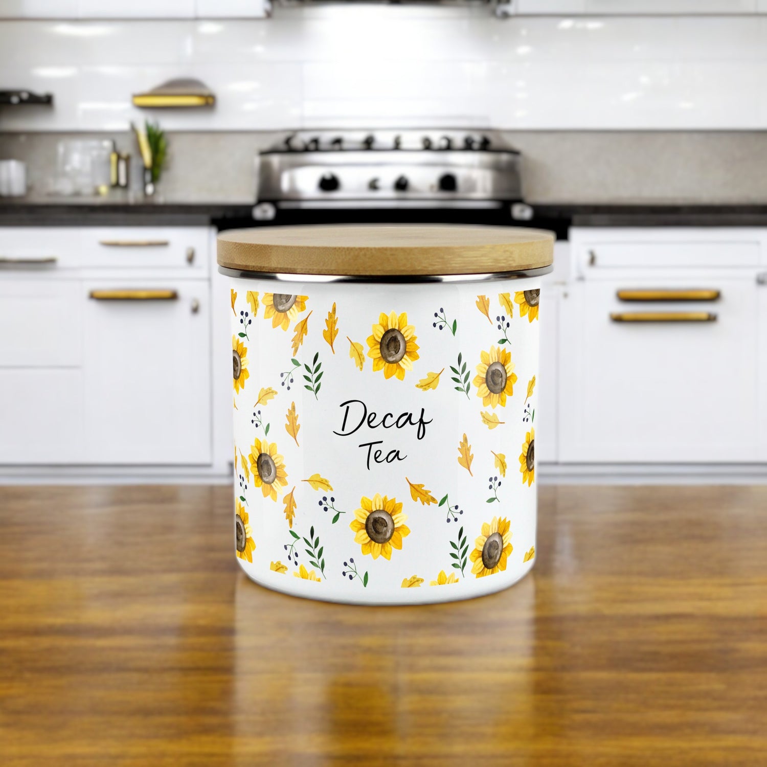 Bright Sunflower Silver Metal Clip Lid Canister