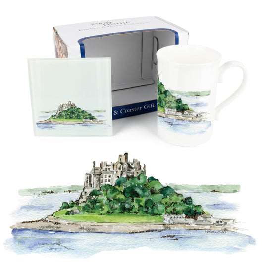 St Michael's Mount Mug & Coaster Gift Set by Rhiannon Chauncey