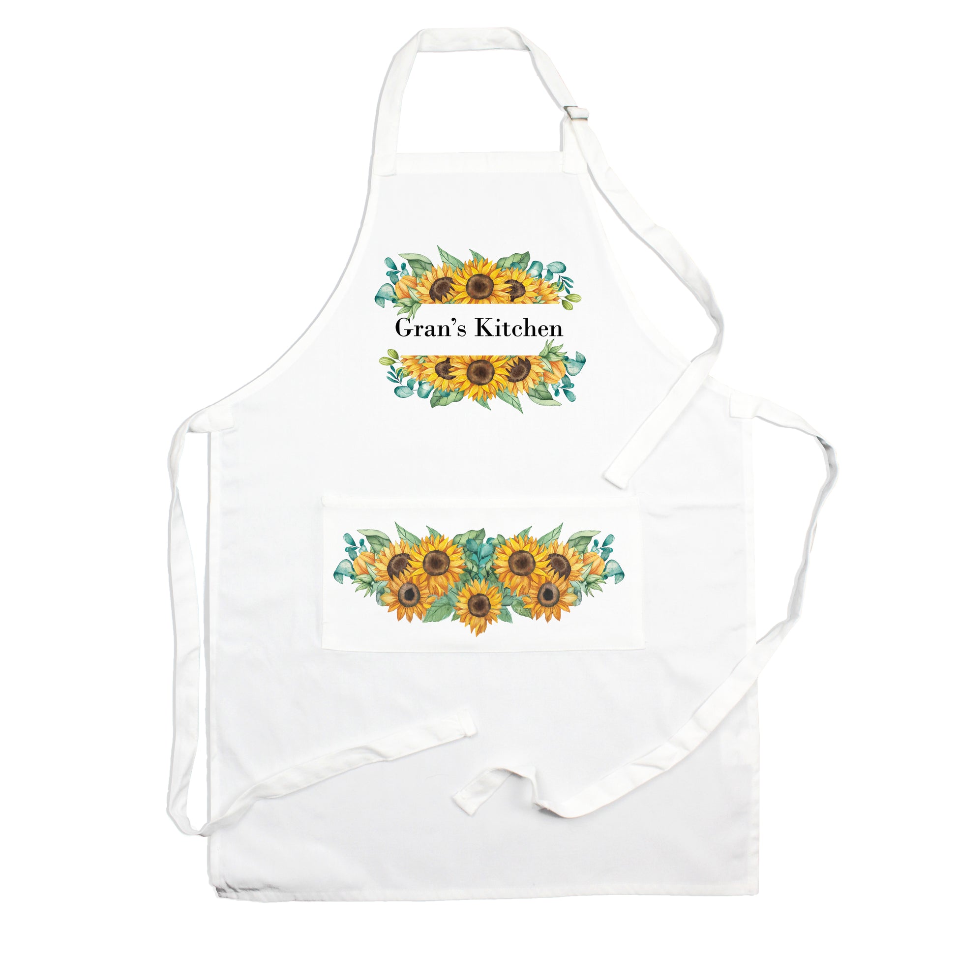 A special gift for the cooking or baking lover in your life! This lovely apron features a bright sunflower design, with personalised text. With a comfortable and adjustable fit, this apron is sure to protect your clothing from spills and splatters when cooking and baking. Perfect as a gift or for everyday use!