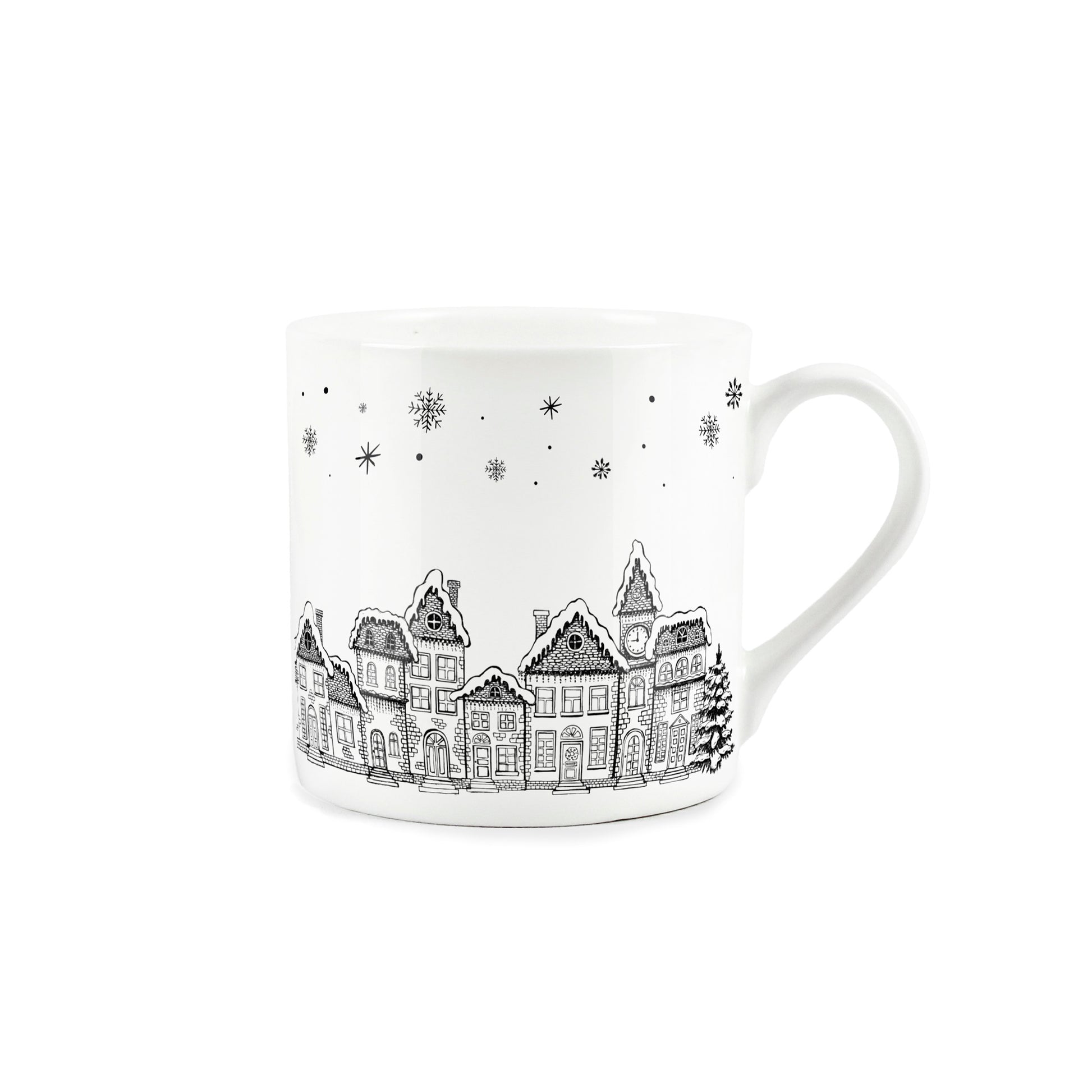 Bring some monochrome festive cheer to your hot drink with this gorgeous Christmas Village Design mug. The black and white wintery houses, Christmas trees and snowflakes are the perfect way to celebrate this great time of year without the usual over-the-top red and green characters. The white china mug has a 380ml capacity, is ideal for a yummy cuppa, coffee or hot chocolate, and is dishwasher safe for extra convenience.