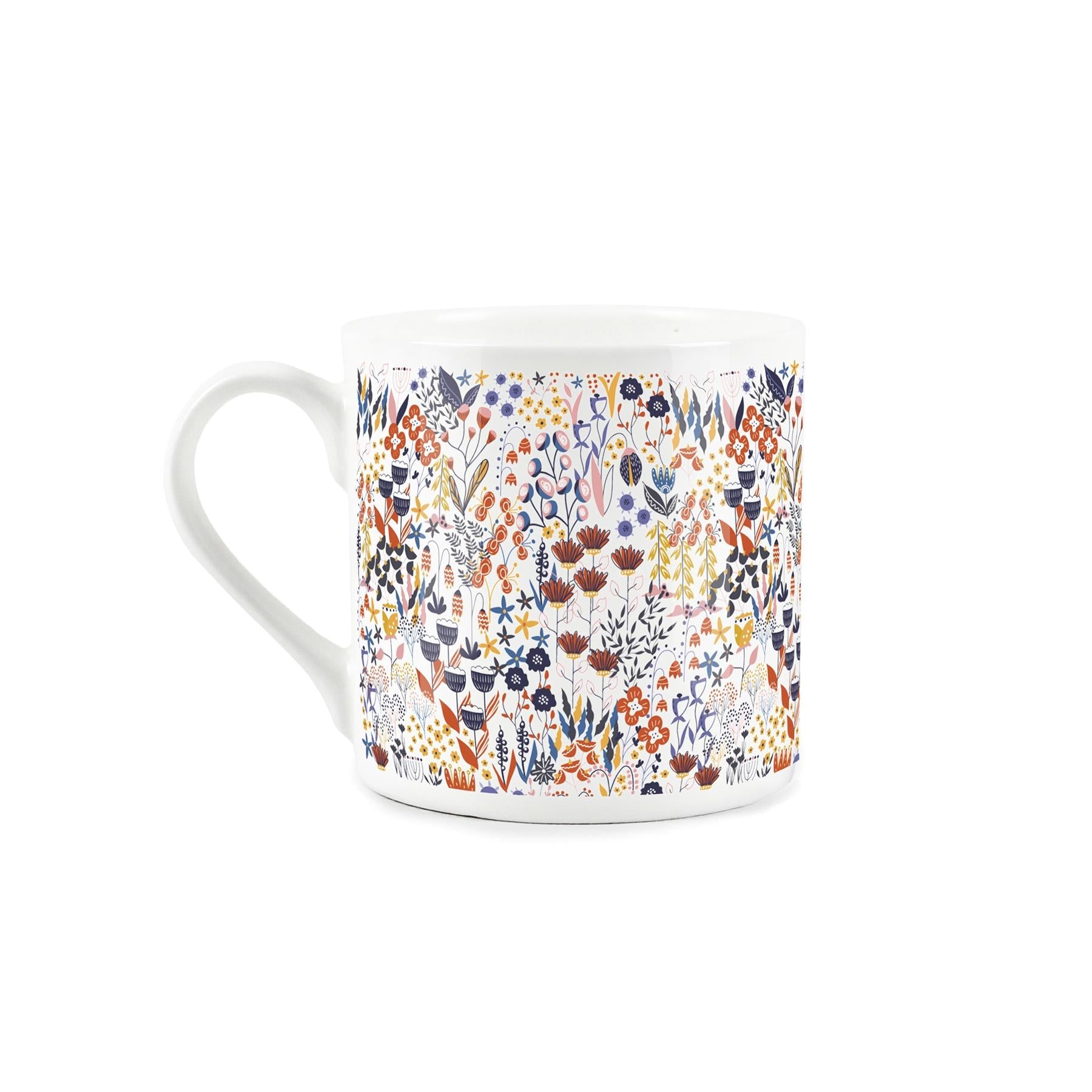Brighten up your kitchen with this gorgeous fine floral mug, decorated with bright reds, yellows, oranges, pinks and contrasting navy blues. The delicate print compliments with the fine china mug perfectly, ideal for all hot drinks whether it be tea, coffee or hot chocolate. Perfect for anyone who loves florals of any kind, or just bright cheerful colours, this mug is a great gift for any occasion! The white china mug has a 380ml capacity and is dishwasher-safe for extra convenience.