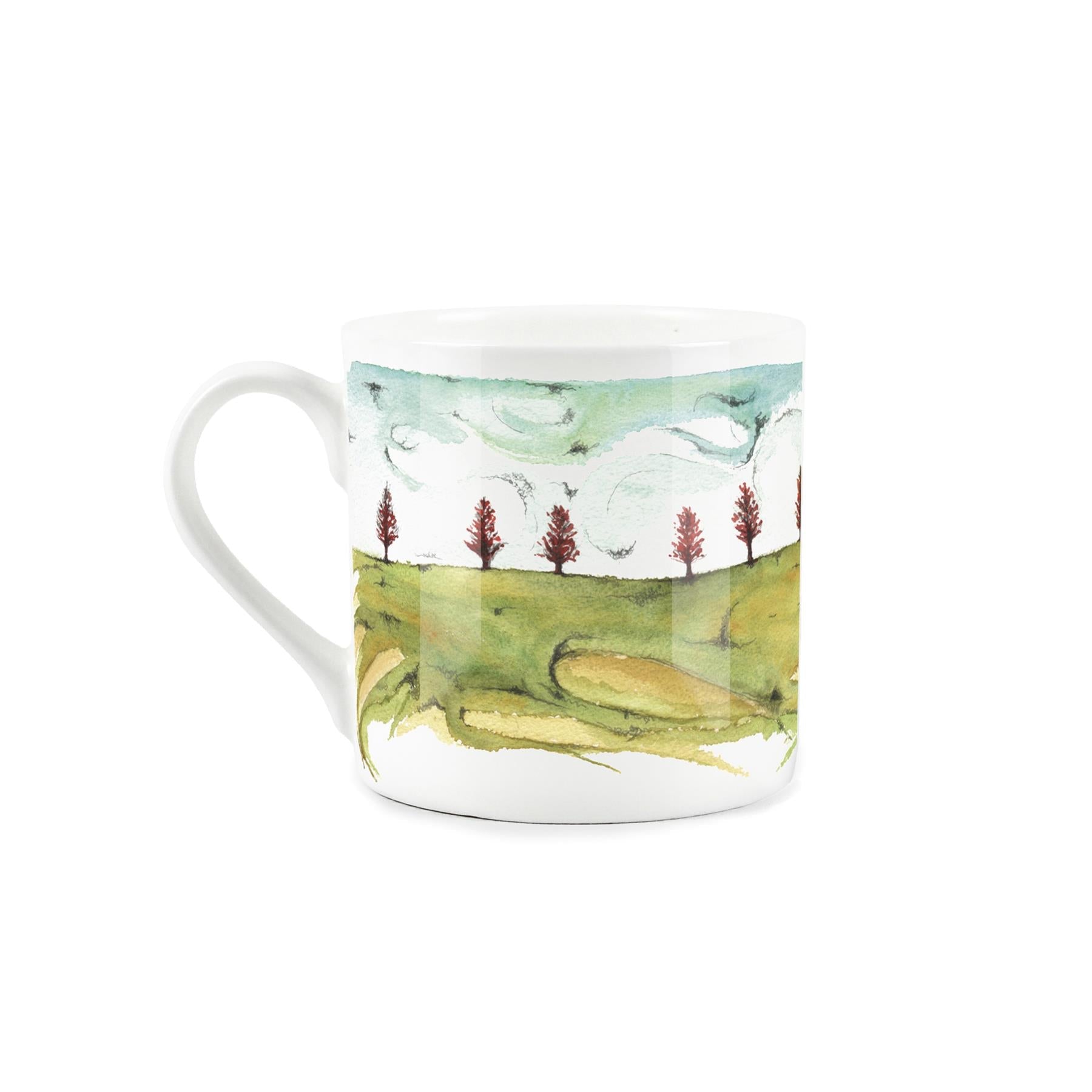 Bring a unique artistic touch to your kitchen with this gorgeous fine china mug, handpainted in watercolour by artist Rhiannon Chauncey. The vibrant greens and blues contrast beautifully with the reds of the trees - bringing the English countryside to life with every sip taken. The rolling hills and swirled skies imitate a windy autumn day, making this mug perfect for gifting anyone with a love for the British countryside, knowing that there are only a few out there with the same unique design. The white china mug has a 380ml capacity, is ideal for a yummy cuppa, coffee or hot chocolate, and is dishwasher safe for extra convenience.