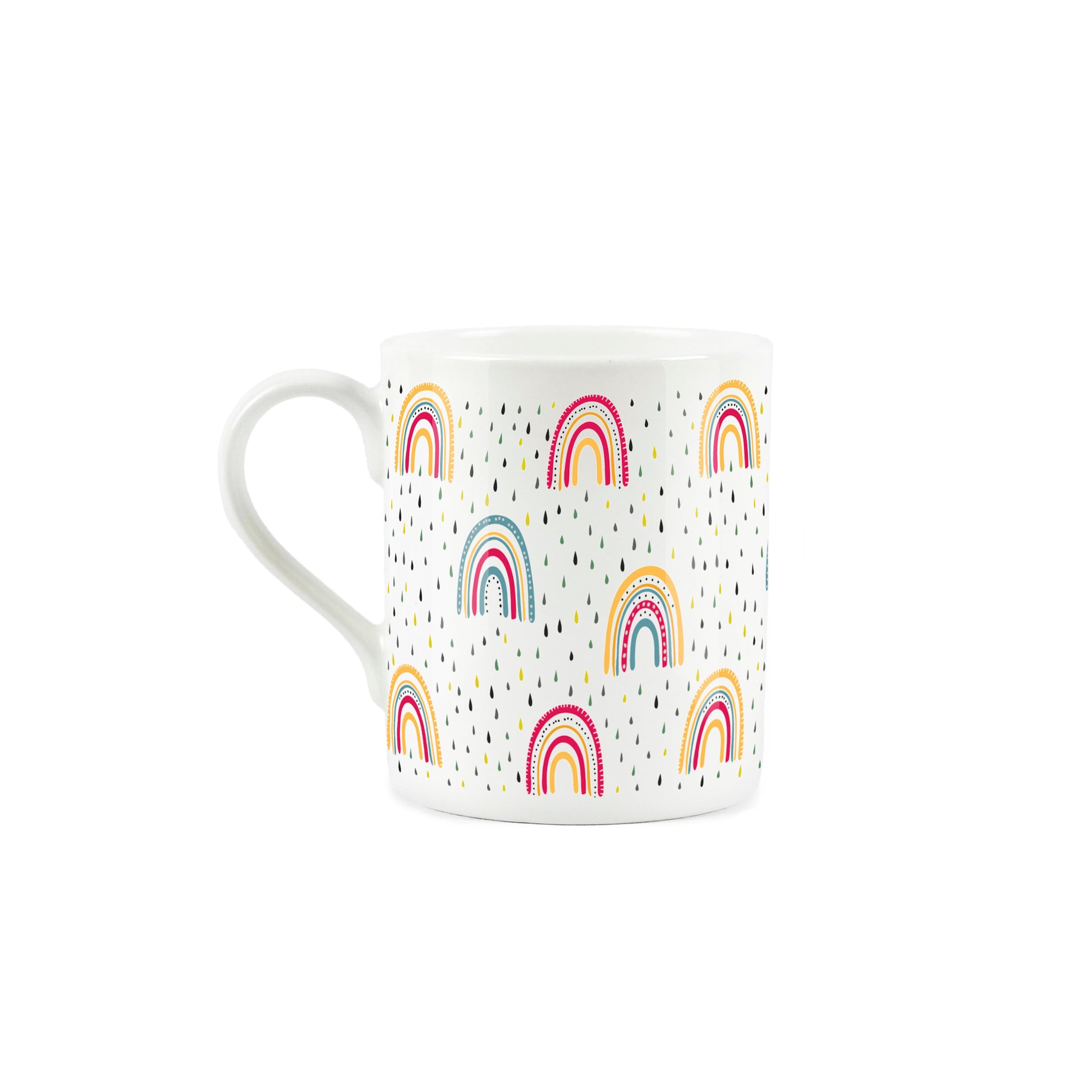 Brighten up your kitchen with this adorable colourful rainbow mug. Printed in fun, bright colours, this mug is smaller than usual, perfect for the person who enjoys a smaller drink, or a child learning to use proper mugs. The rainbows and rain are printed in a wonky style, lending to a hand-drawn effect, making a perfect gift for a loved one or colleague, for any occasion.