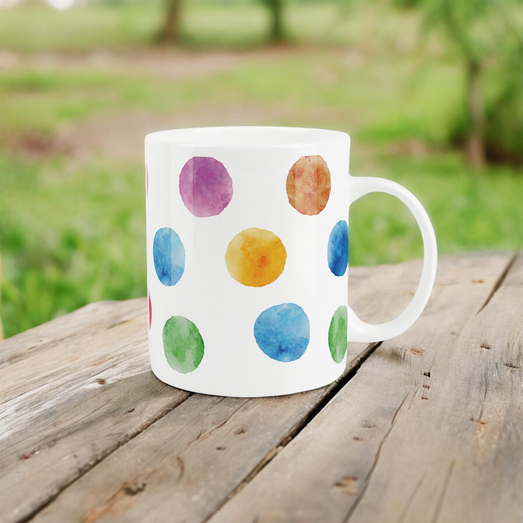 Bring the joy of a rainbow into your home with this spotty bone china mug! Perfect for adding a fun pop of colour to any kitchen, this multicoloured polka dot patterned cup would make a lovely housewarming gift or a pretty, practical addition to your own home!