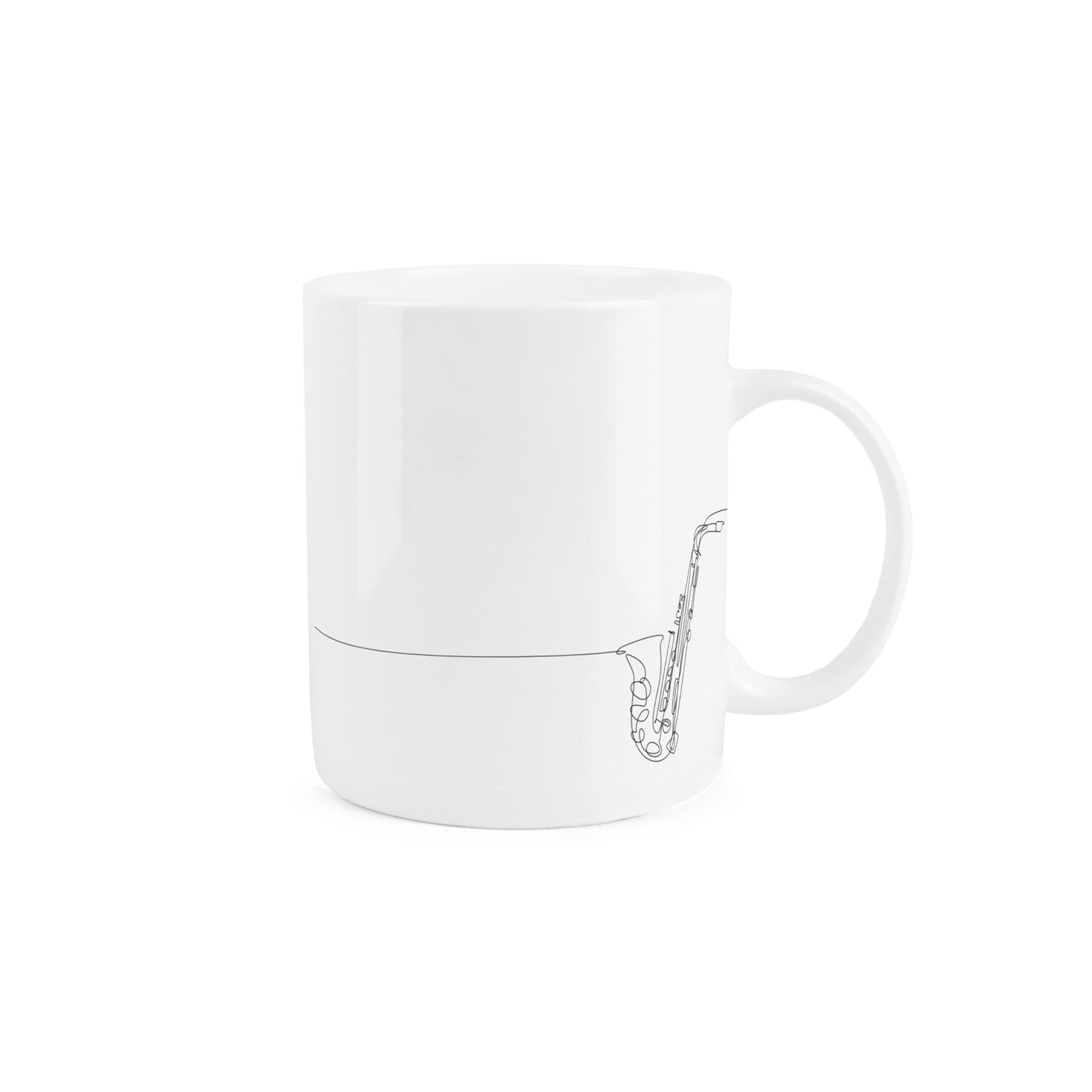 Simplistic yet effective - this stunning bone china mug is a lovely, thoughtful gift for your music loving friends and family. Featuring a fine line drawing of brass wind instruments, you can sit back, relax and enjoy a yummy cuppa, coffee or hot chocolate whilst listening to upbeat tunes! This white china mug has a 400ml capacity, and is dishwasher safe for extra convenience.