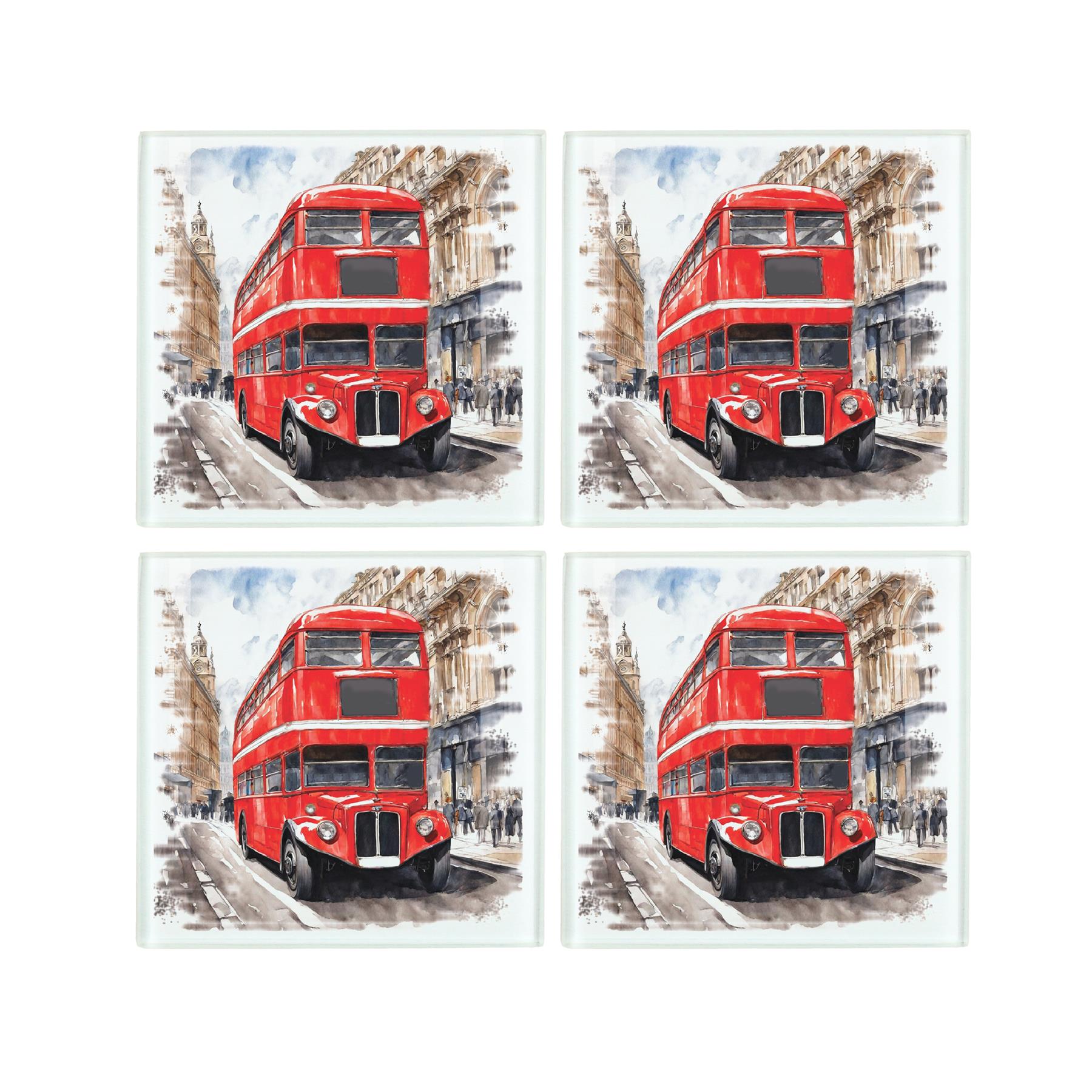 Sure to catch the eye of any city lover, this set of vintage style coasters each feature a large red double decker bus - a London staple!