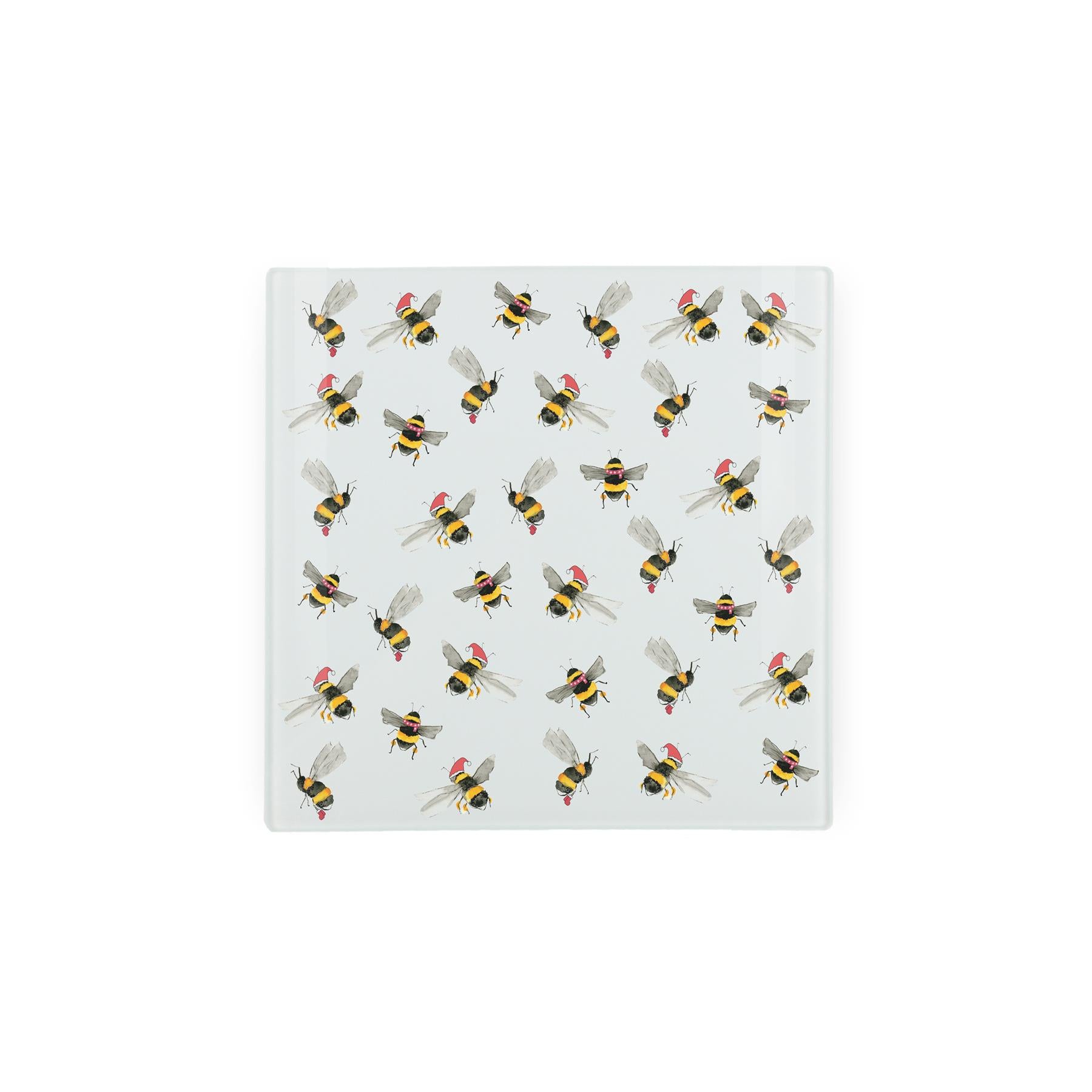 This adorable glass hot pot stand features little flying bumblebees, decked out in novelty Santa hats, boots and scarves. Perfect as a Christmas gift for friends, family or yourself, designed by artist Rhiannon Chauncey. Withstanding high temperatures without cracking, this hygienic wipe-clean design resists odours and stains, protecting work surfaces and tabletops from burns, stains and general wear and tear. Small silicone feet on each corner create stability and slip resistance.