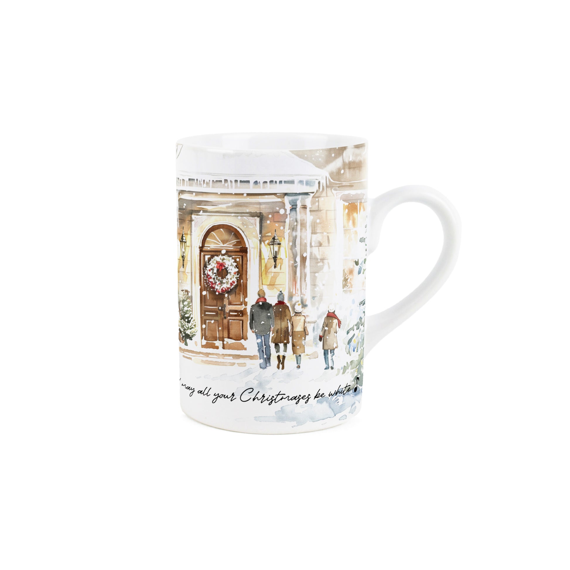 Nothing beats the feeling of excitement during a snow day! Featuring a glistening illustrated scene of a warmly lit house on a winter's day, with snow falling and wind whistling all around, this ceramic mug is perfectly finished with the well-know singalong phrase 'May your days be merry and bright, and may all your Christmases be white'. The ideal Christmas gift for all lovers of the holidays!