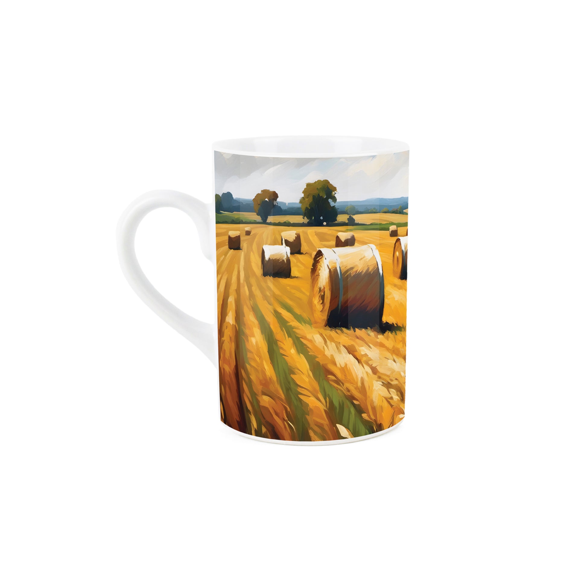Immerse yourself in the tranquillity of nature with this picturesque ceramic mug! Capturing the rustic charm of a farmer's field in summer, with bales of hay & a bright blue sky. Perfect as a gift for friends, family or yourself!