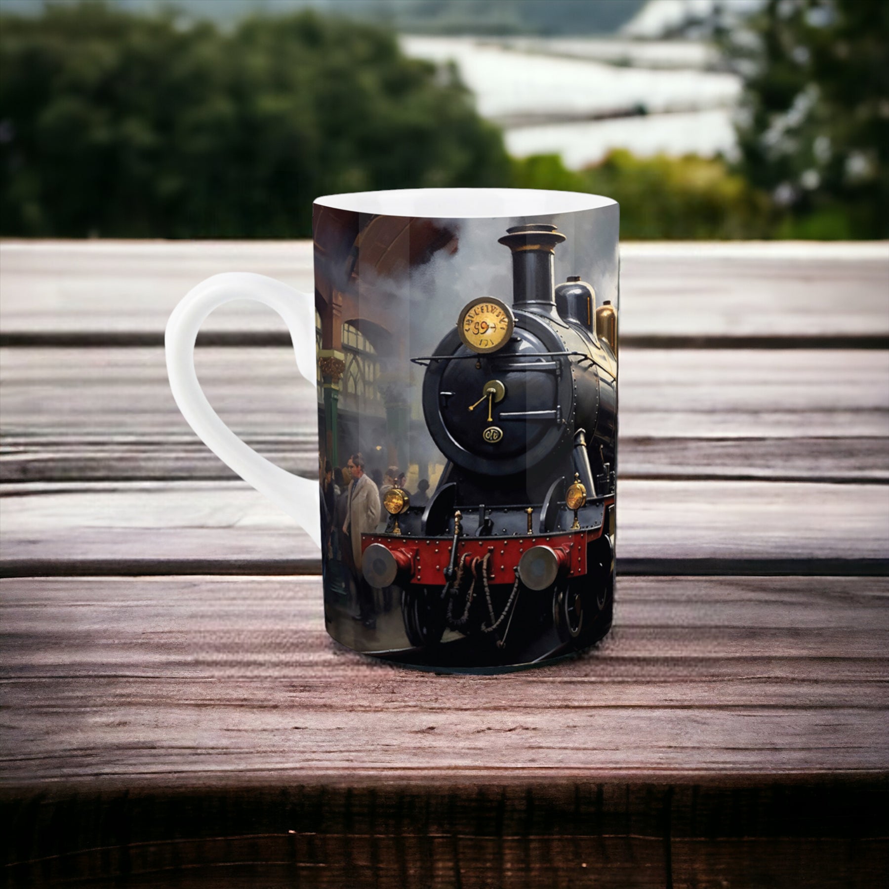 Add some extra steam to your hot drinks with this steam train themed mug, featuring a top to bottom scene of a steam train arriving at the platform! Perfect as a gift for yourself or for the train enthusiast in your life!