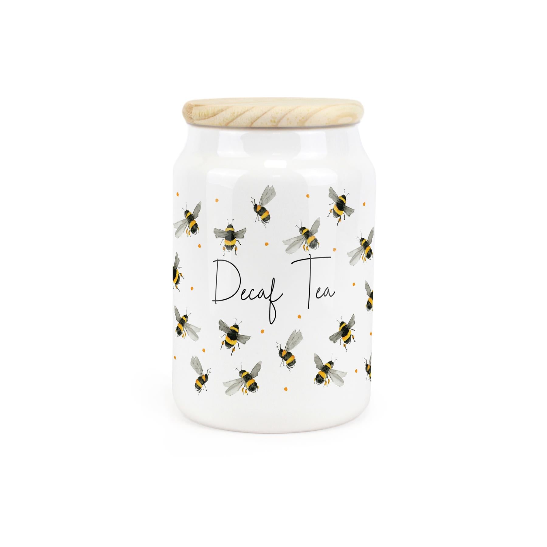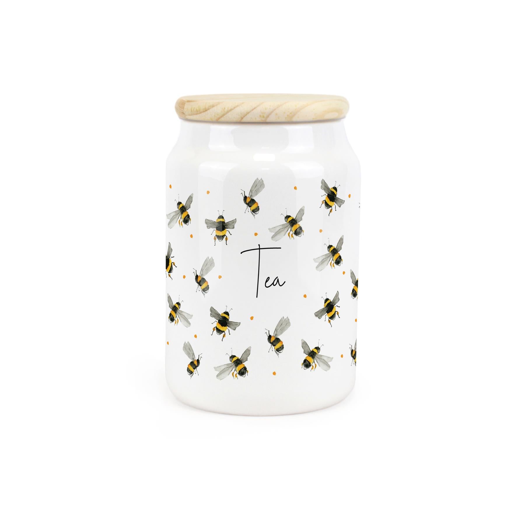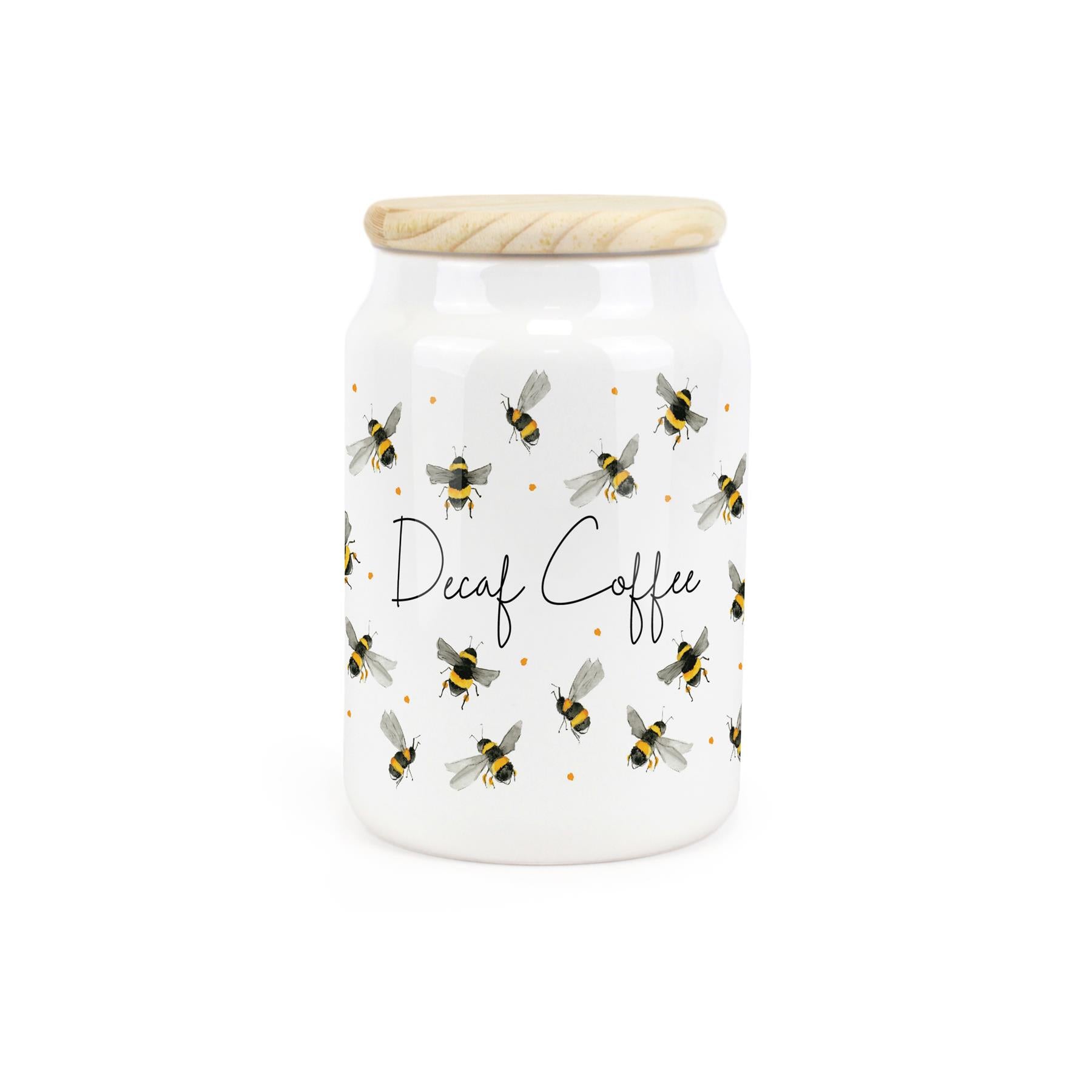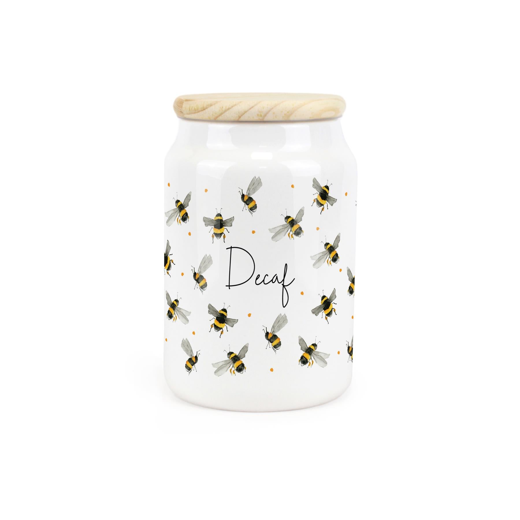 This stunning ceramic coffee storage container is a perfect addition to any bee-lovers kitchen! Featuring a sweet illustration of flying bees, designed by artist Rhiannon Chauncey.