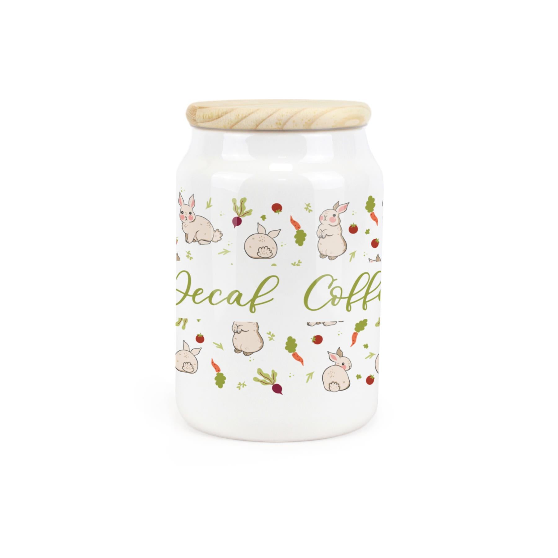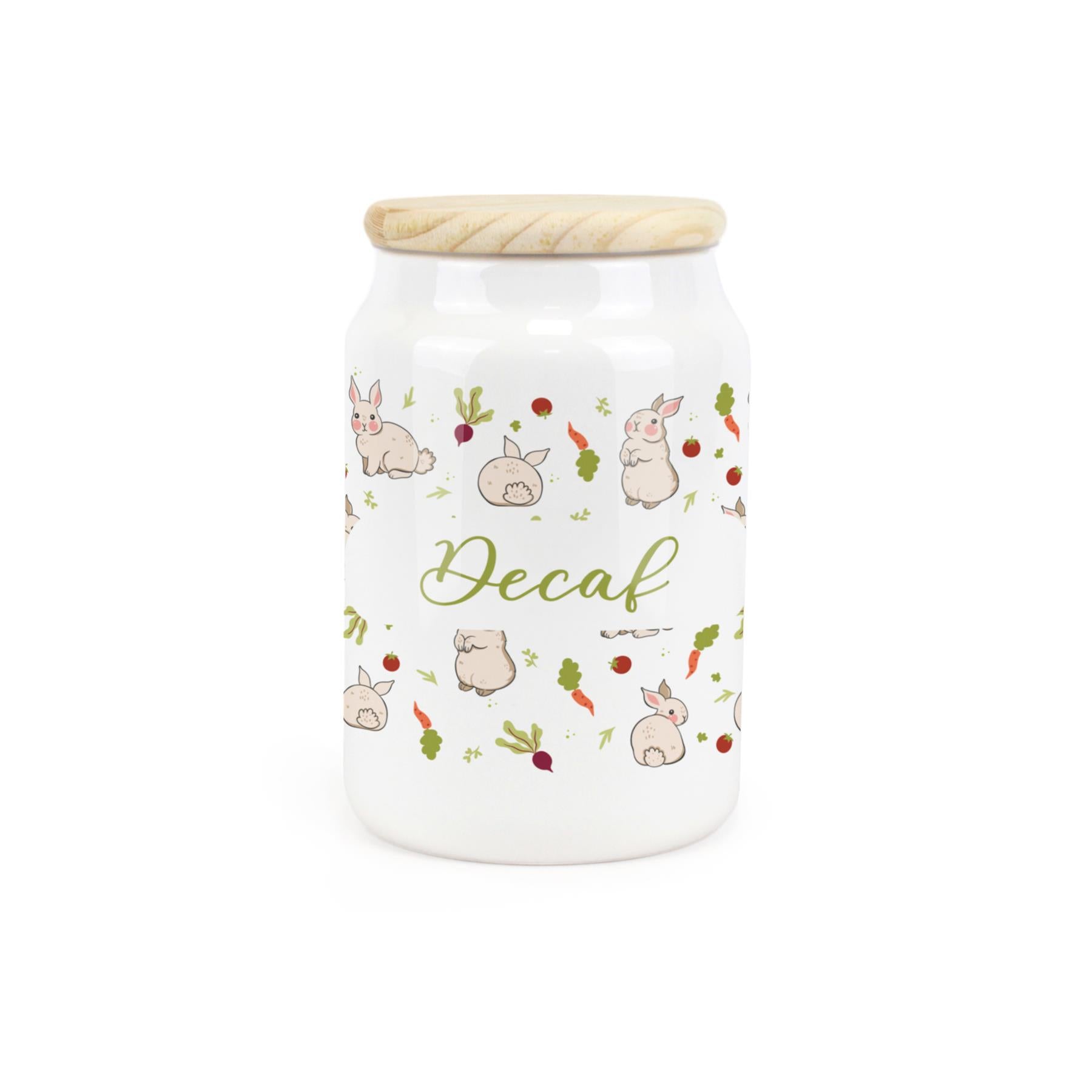 An adorable and practical addition to any home, this cute coffee canister would make a lovely housewarming gift or treat to yourself to brighten up your kitchen décor! Featuring rabbits surrounded by vegetables, with pear green text, you'll always know where to find what you need when making a hot drink!