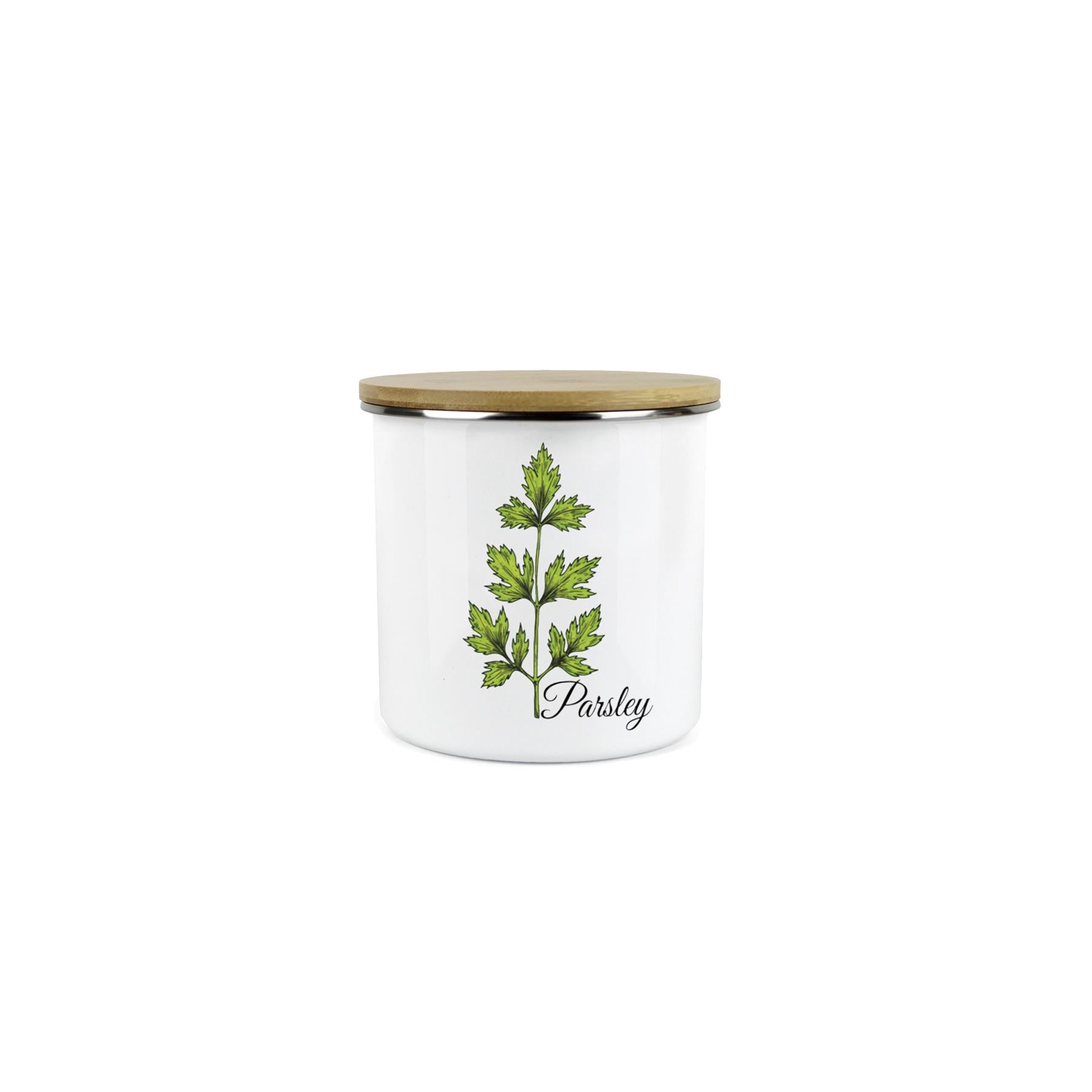 Give your cooking space the next level of organisation with this stunning herb storage canister! With an airtight lid and durable enamel & bamboo makeup, this small jar is perfect for anyone who uses refill shops, saving you money, while saving the planet at the same time! The clean white design will also suit any kitchen, meaning you can have style without compromising on practicality.
