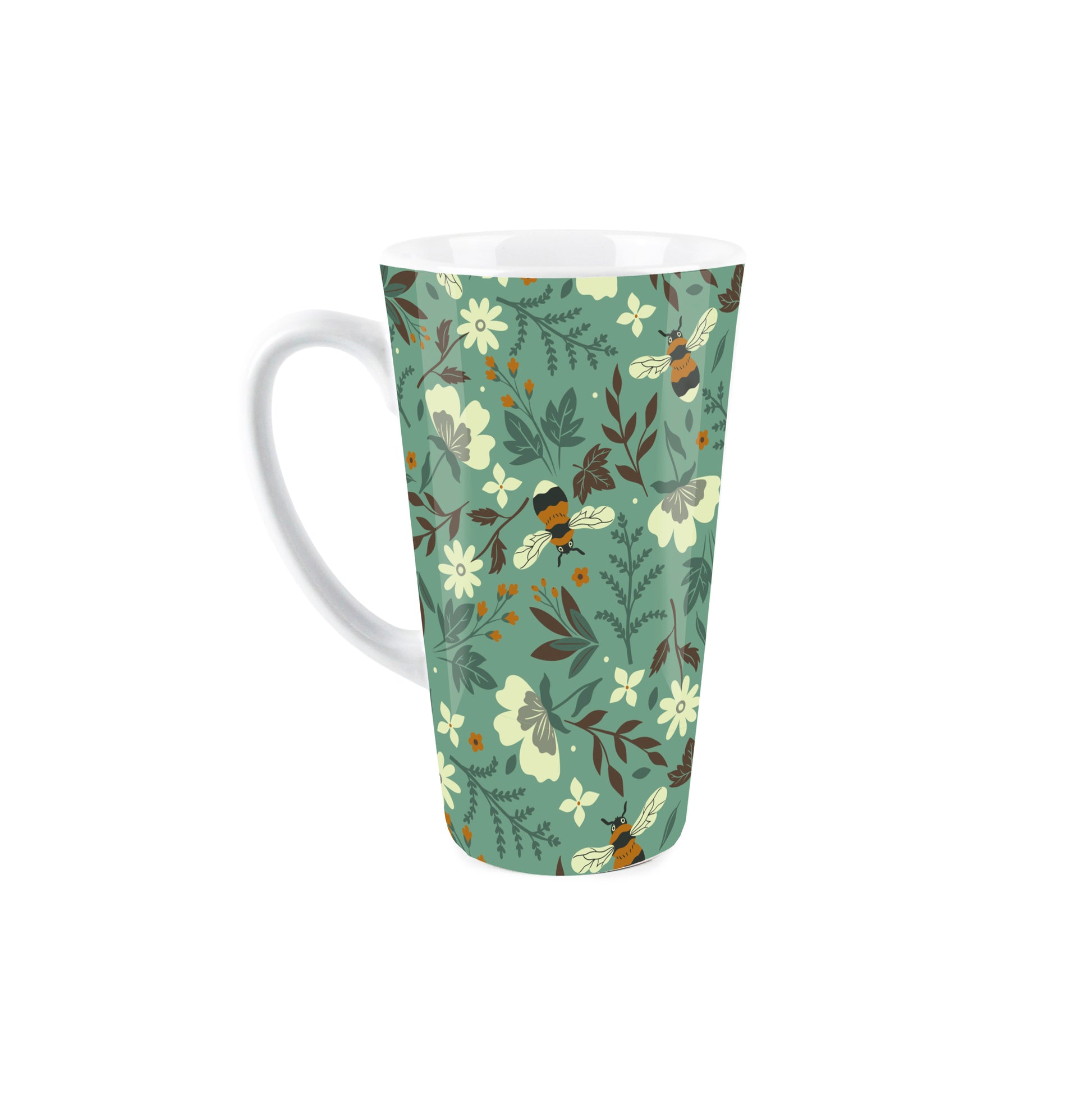 This pretty ceramic latte-style mug features a gorgeous green floral design, with bumblebees buzzing! Perfect for delicious coffees and hot chocolates, the full colour artwork brings a unique touch to any kitchen and the large 400ml capacity ensures enjoyment for longer. The ceramic coffee cup is dishwasher safe for extra convenience, so you'll never have to be without your new favourite mug!