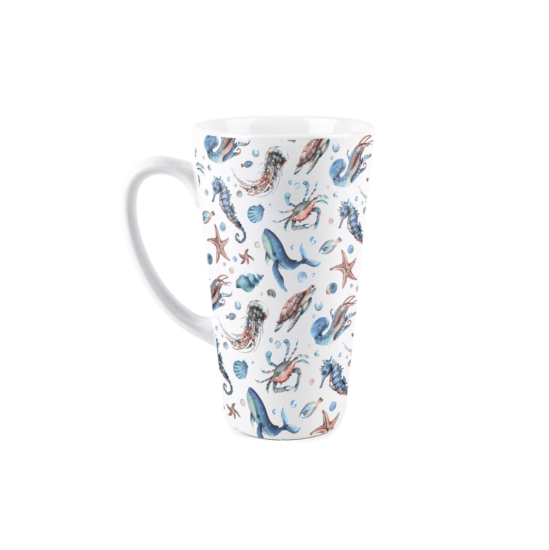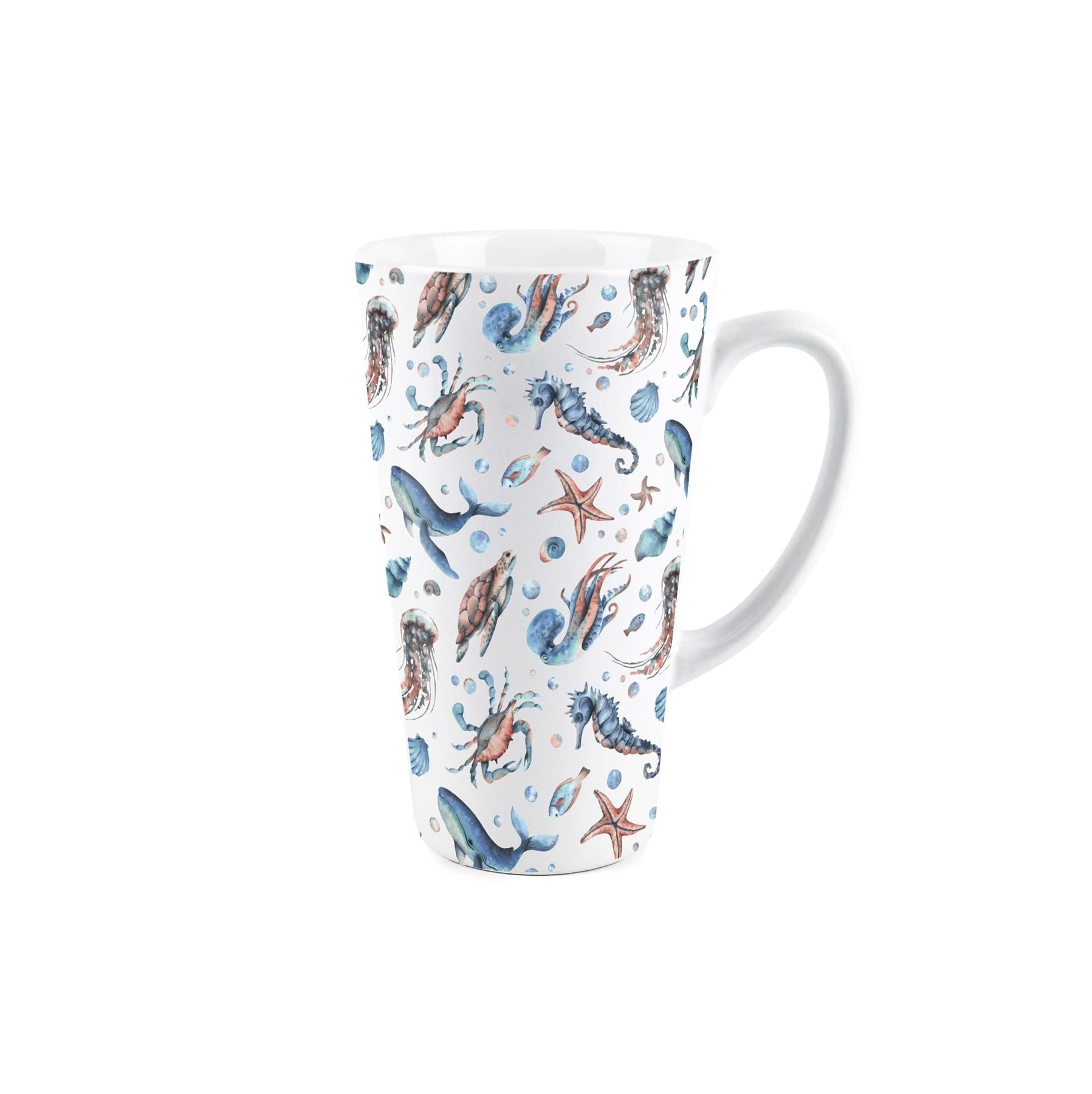 This fun, ocean inspired latte mug is a perfect gift! Made from durable ceramic with a sea creature inspired design, featuring whales, turtles, jellyfish and more. The large 400ml capacity ensures enjoyment for longer. The ceramic coffee cup is dishwasher safe for extra convenience, so you'll never have to be without your new favourite mug!