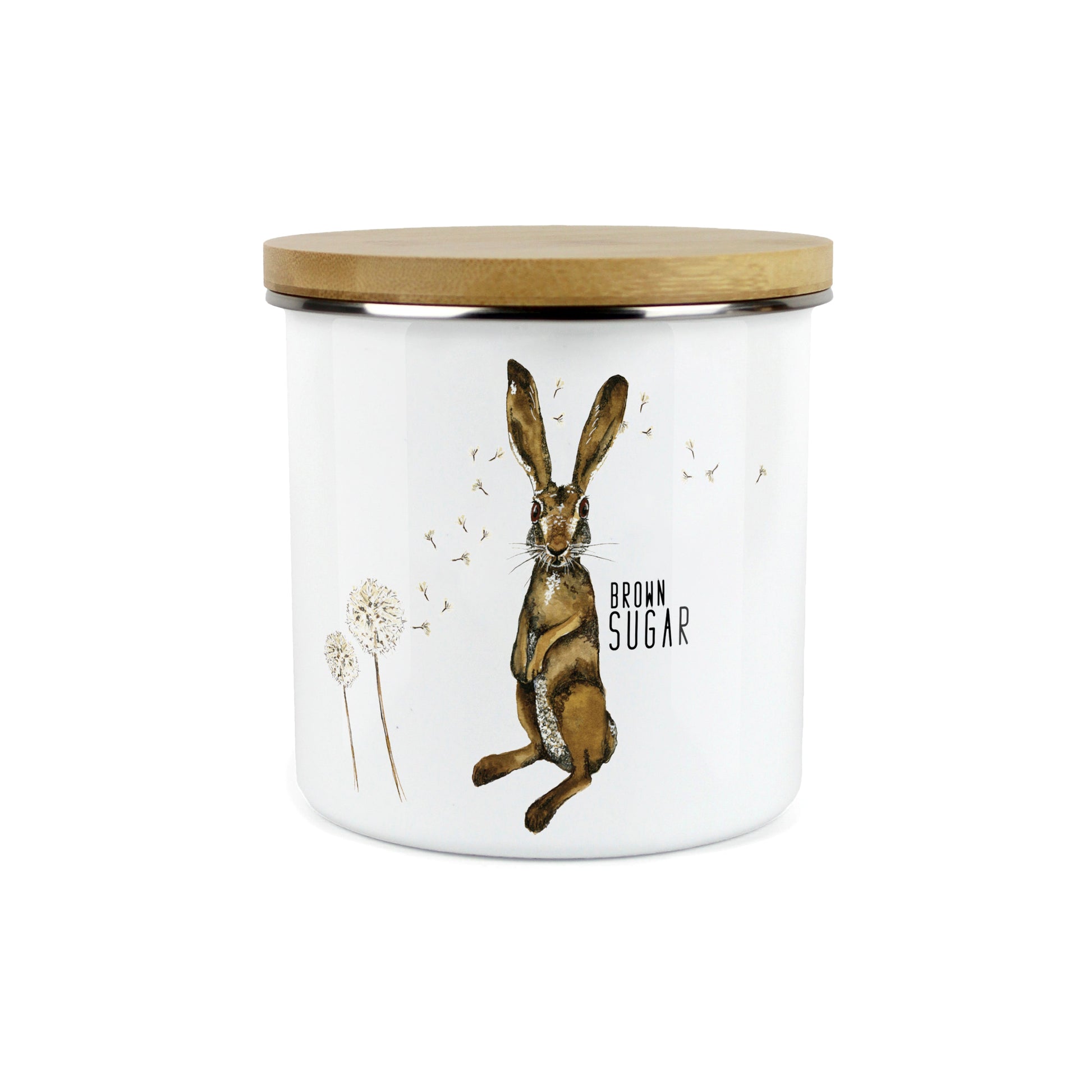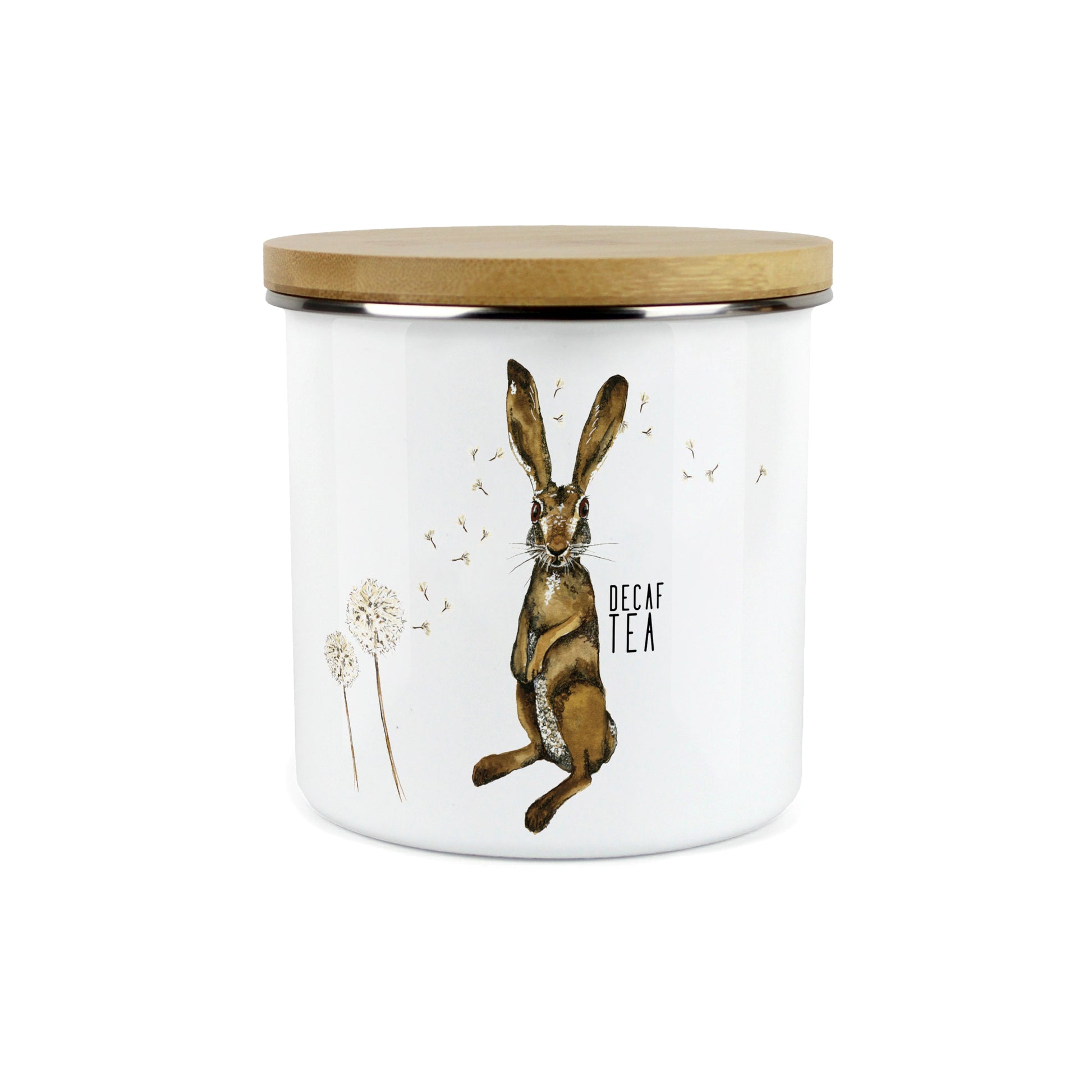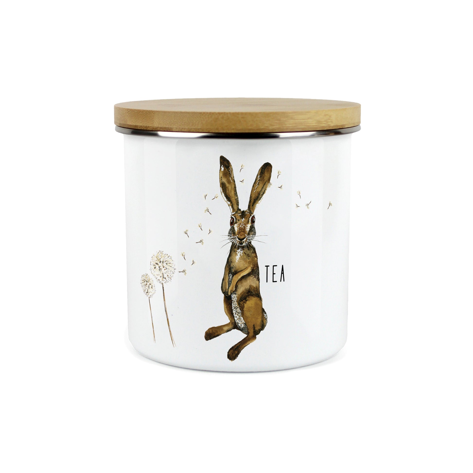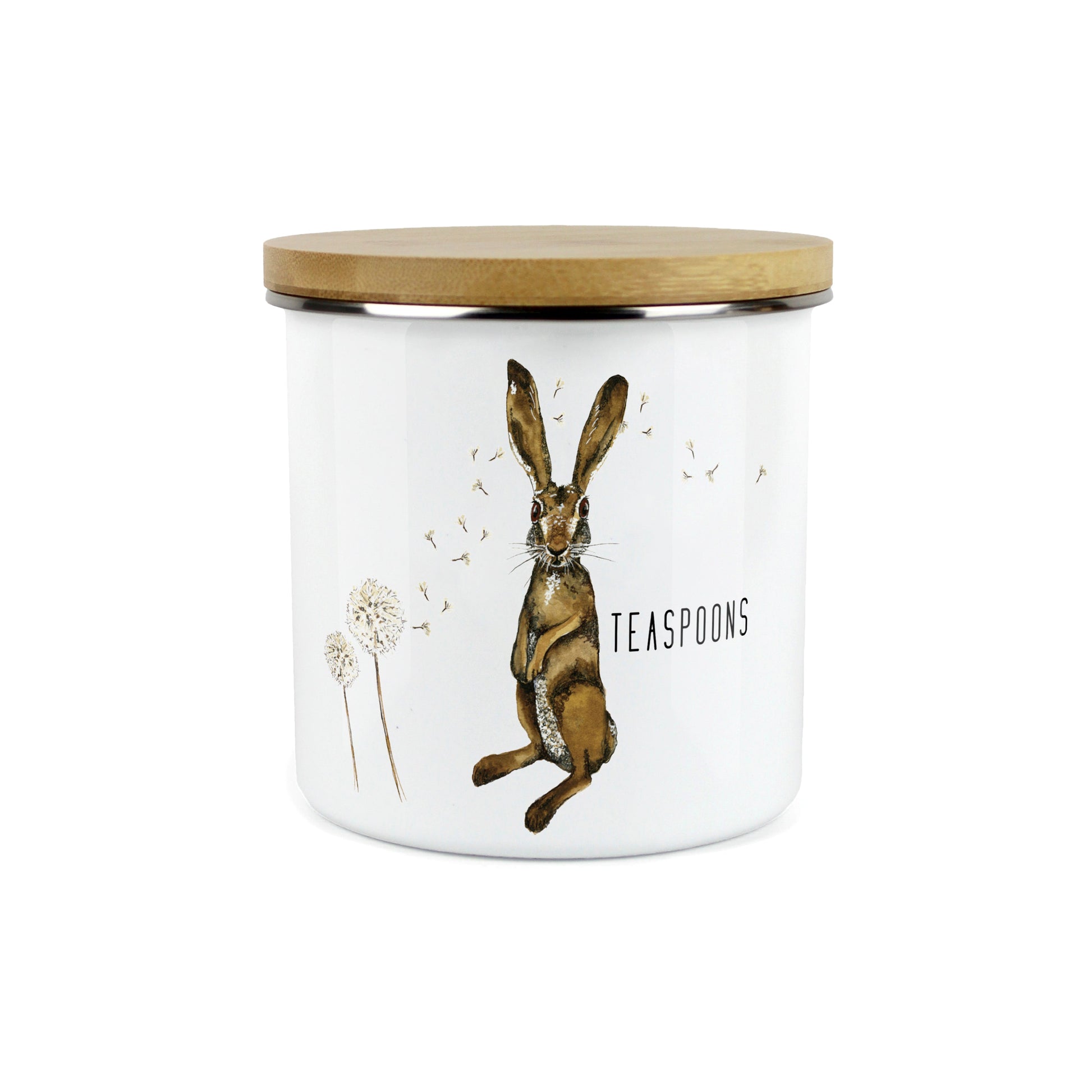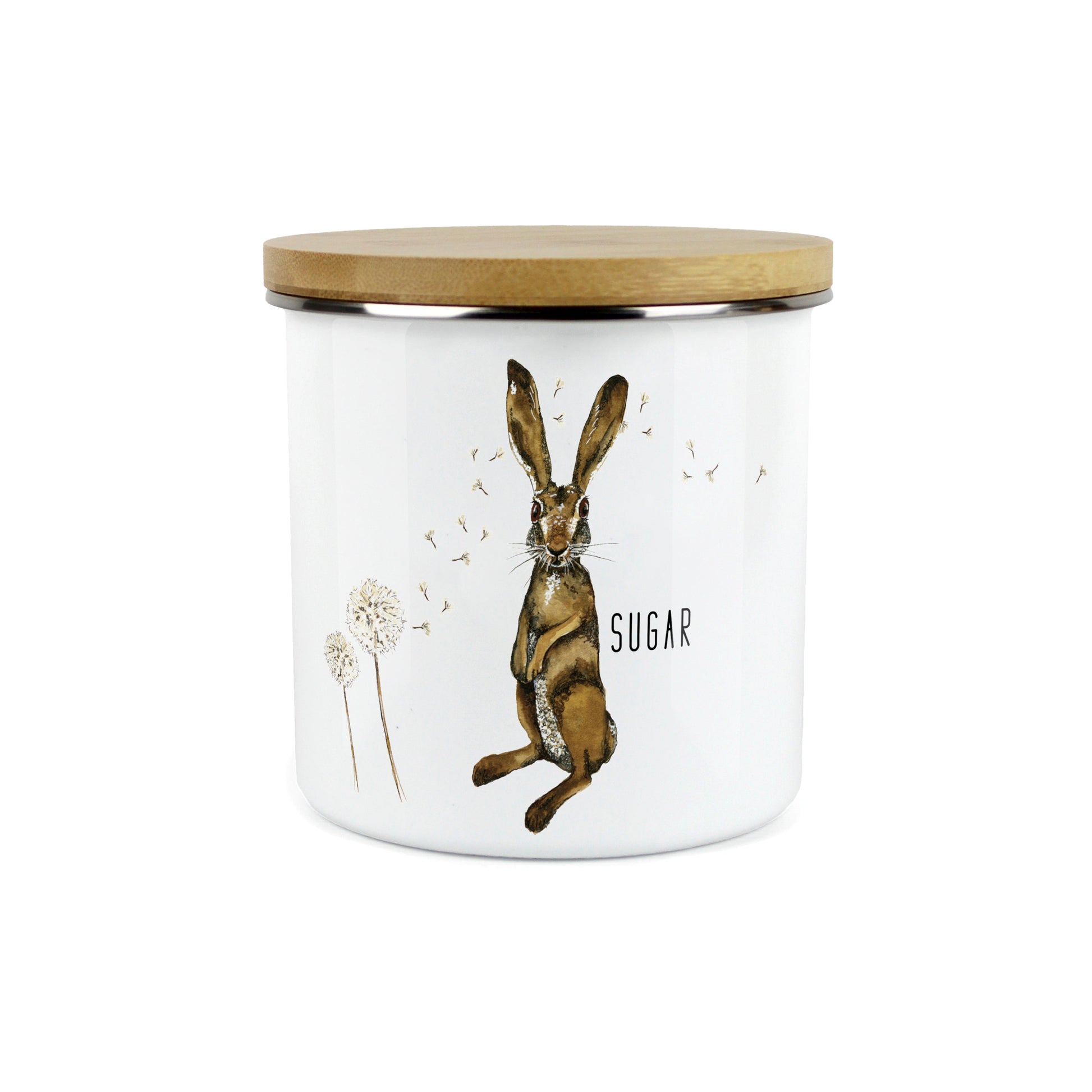 Hares & Dandelions Large Enamel Canister by Rhiannon Chauncey