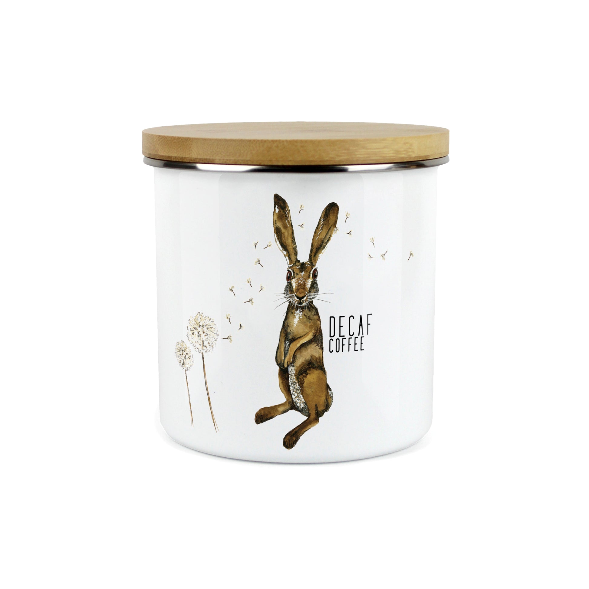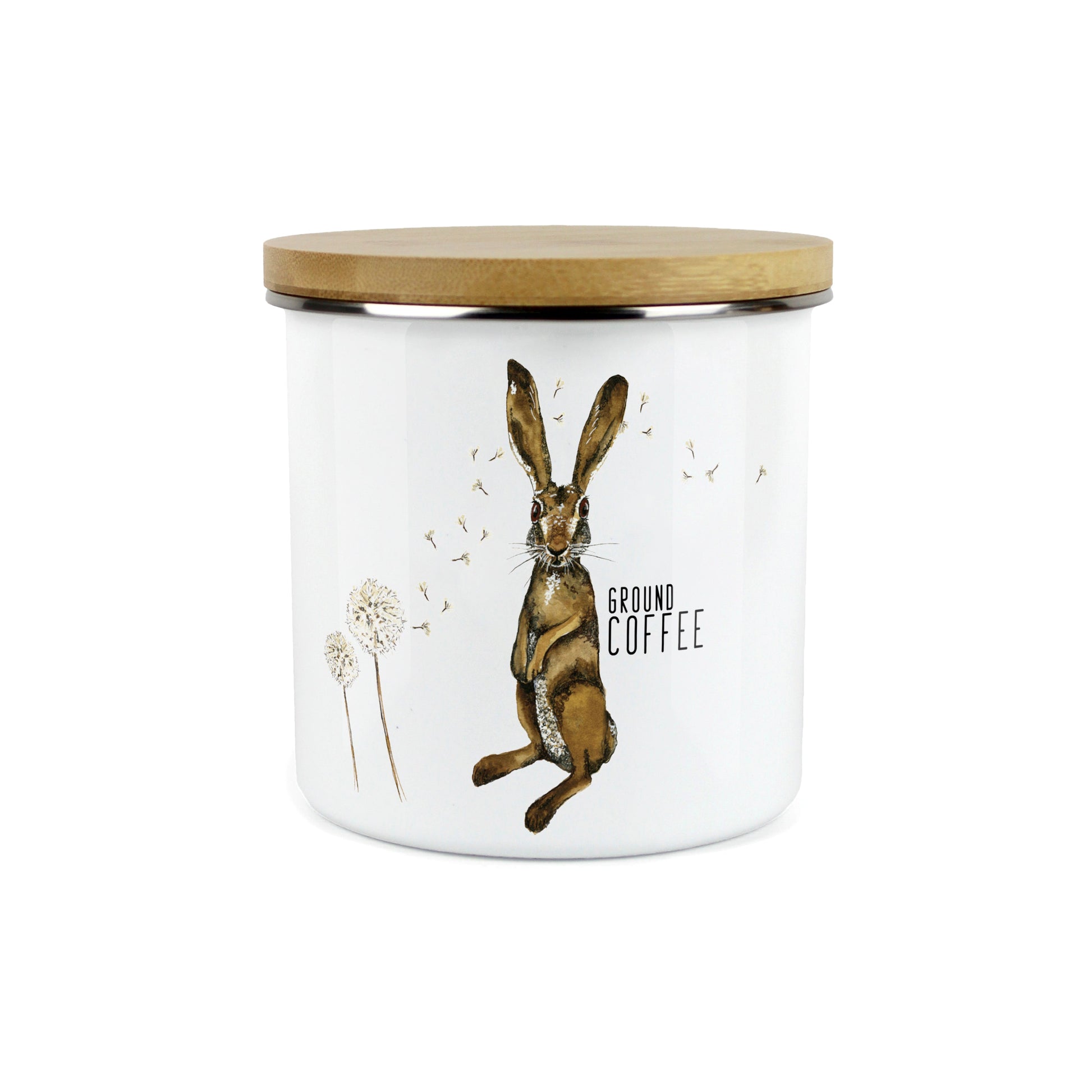 This storage canister features an adorable hare print, playing amongst the dandelions! Designed by artist Rhiannon Chauncey, it is a lovely addition to any kitchen. This canister is perfect for storing your drinks ingredients, as the metal jar features an airtight bamboo lid and a useful 1.2L(approx) capacity.