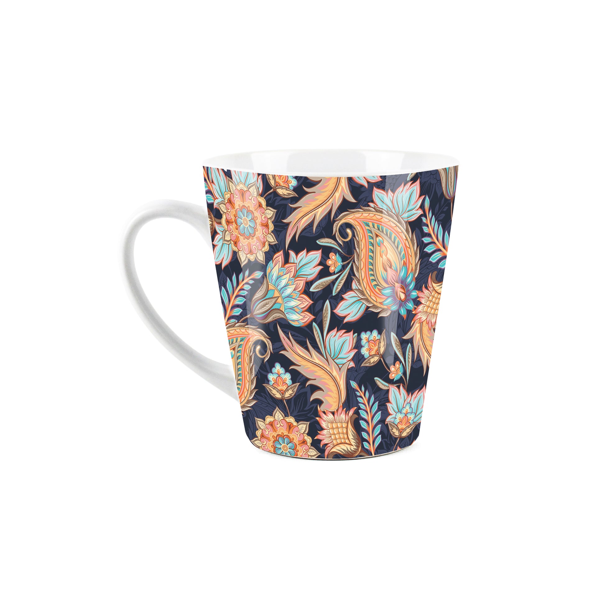 Brighten your day with this gorgeous ceramic paisley latte mug. Perfect for all hot drinks, this durable coffee cup would make the perfect gift or new addition to your kitchen, featuring a selection of dark coloured paisley pattern.