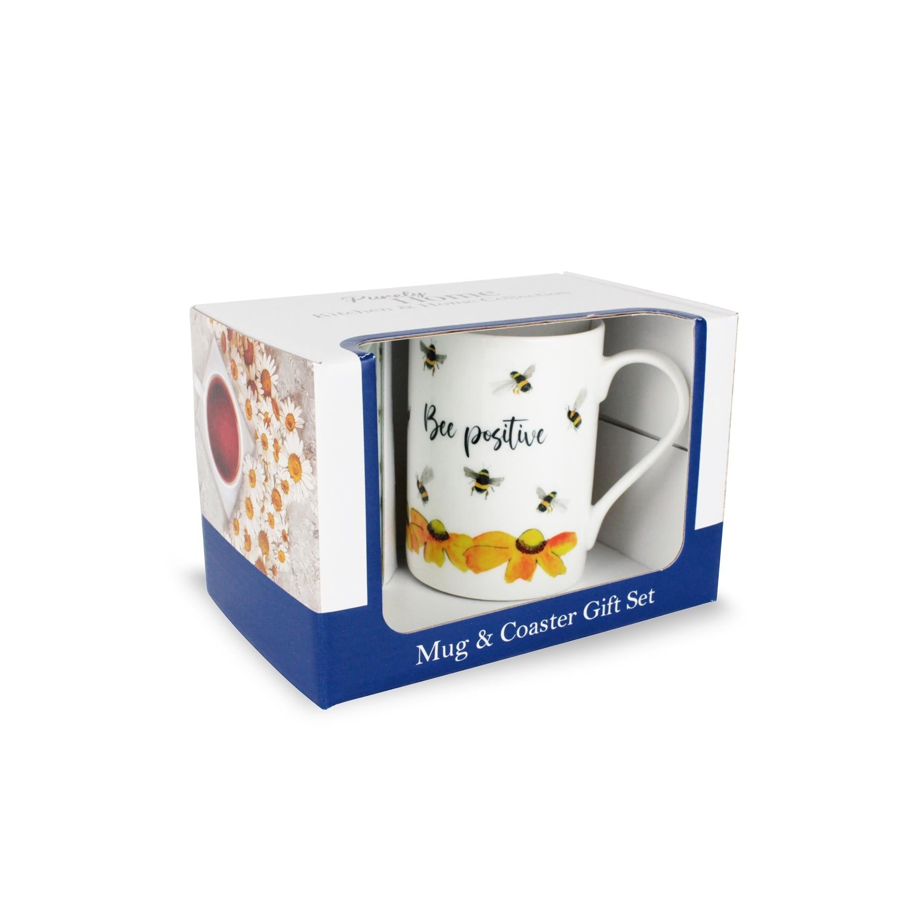 This gorgeous mug is guaranteed to put a smile on anyone's face! With scattered flying honey bees and vibrant yellow florals, hand painted in watercolours, this coffee mug is the perfect gift. The 'Bee Positive' text is a great play on words, to bring some cheer to your hot drink experience. This unique print will make the perfect addition to any kitchen. The square coaster is crafted from tempered glass and dotted with silicone non-slip feet.
