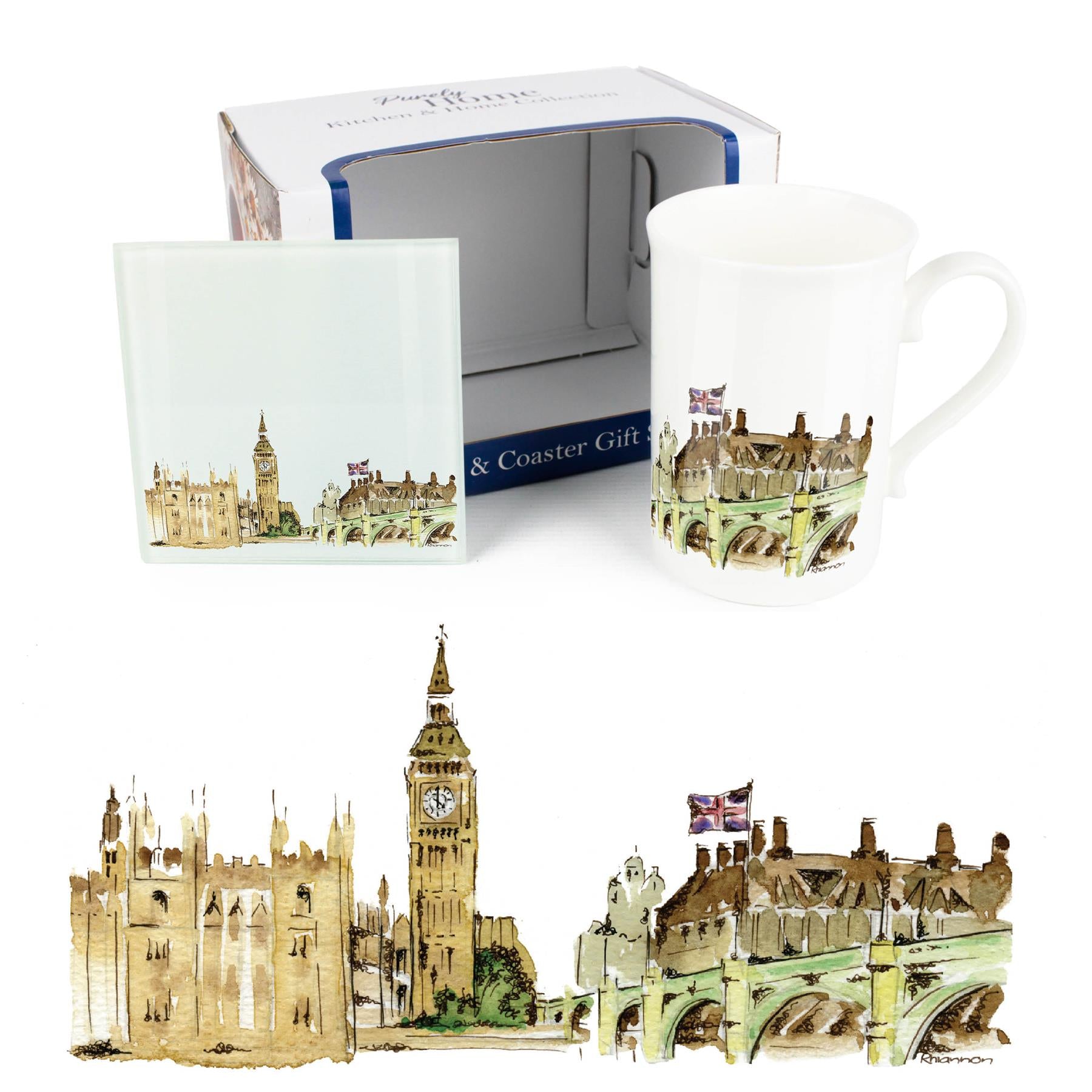 Big Ben Mug & Coaster Gift Set by Rhiannon Chauncey