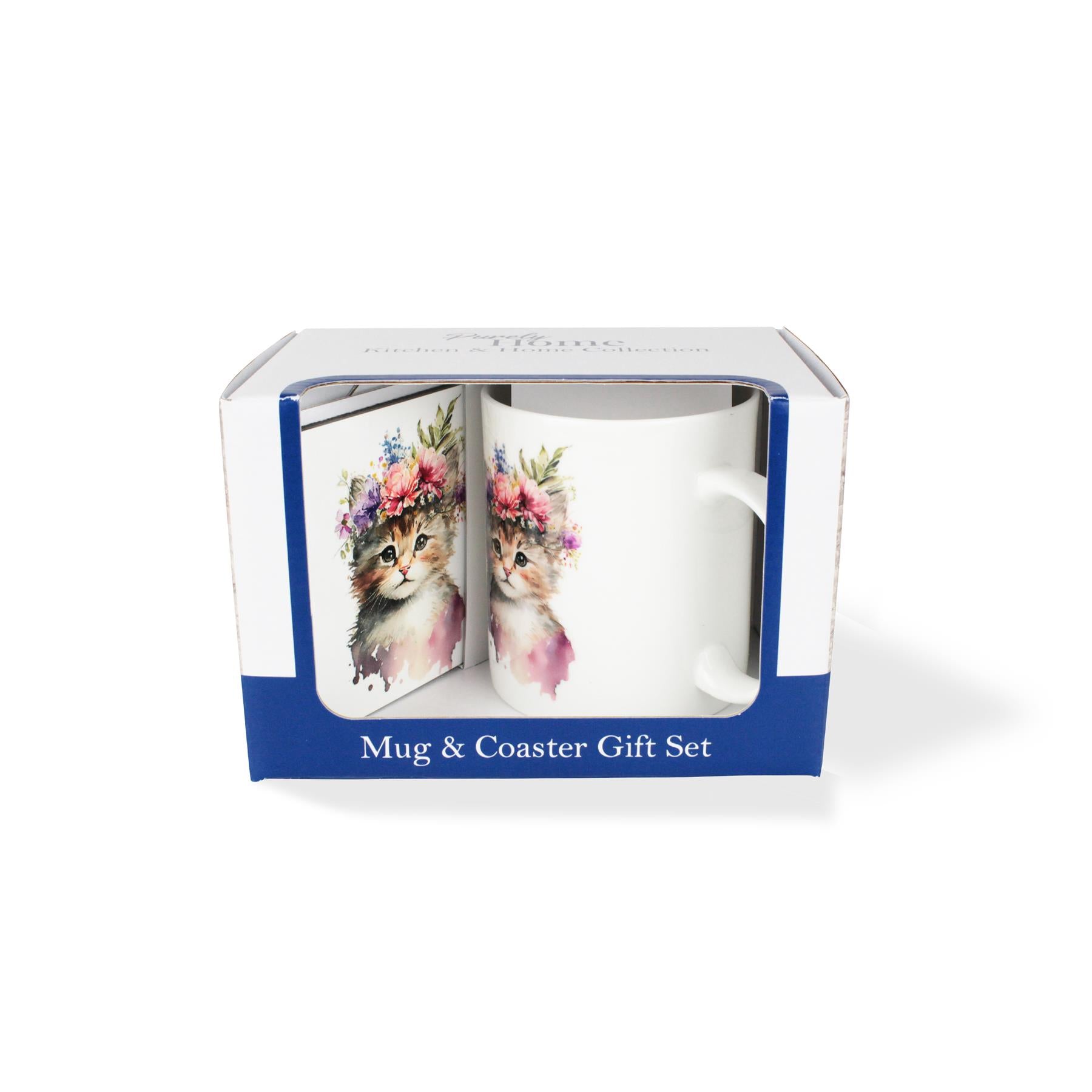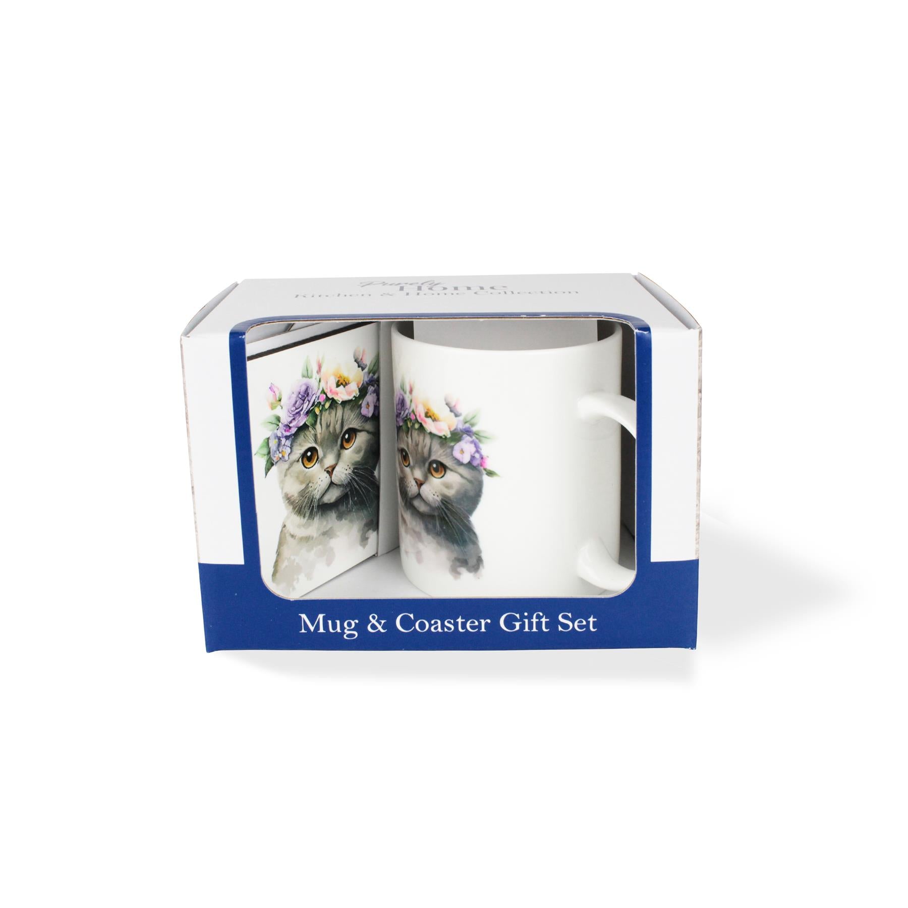 Are you an animal lover? These cute mug & coaster sets feature adorable pet and exotic animal designs, sporting a crown of flowers! This would be the perfect gift for those who either have a cat, dog, or just love animals in general. This set consists of a bone china mug and a square cork coaster to protect your surfaces.