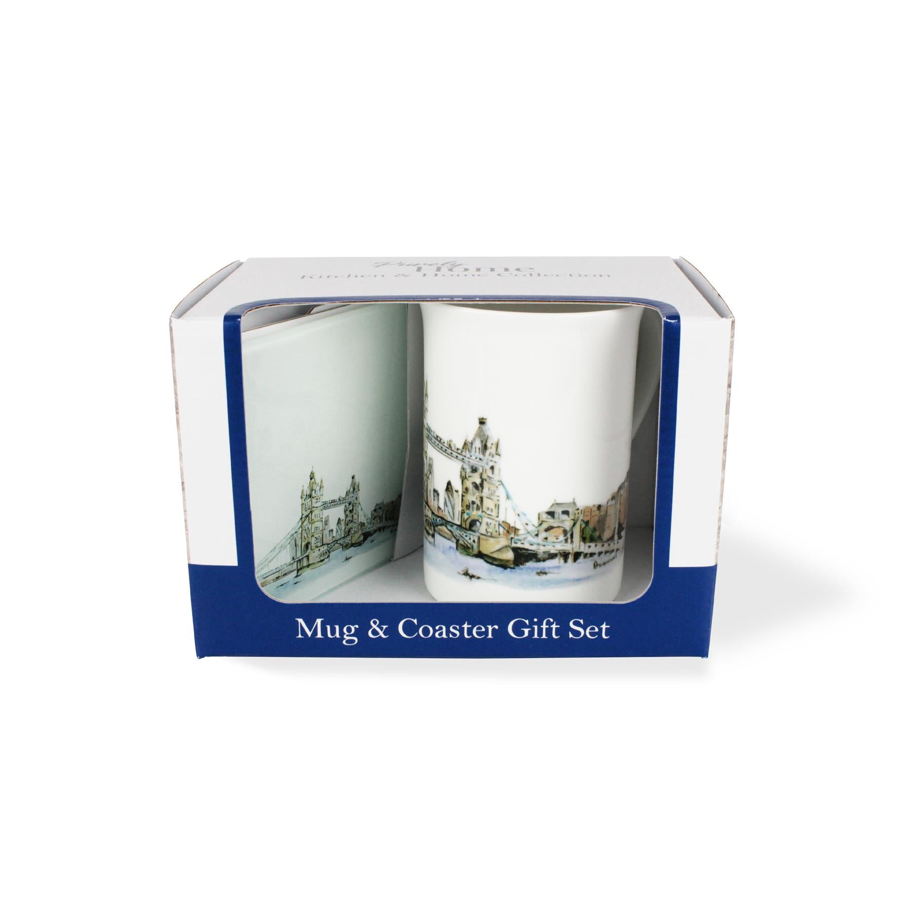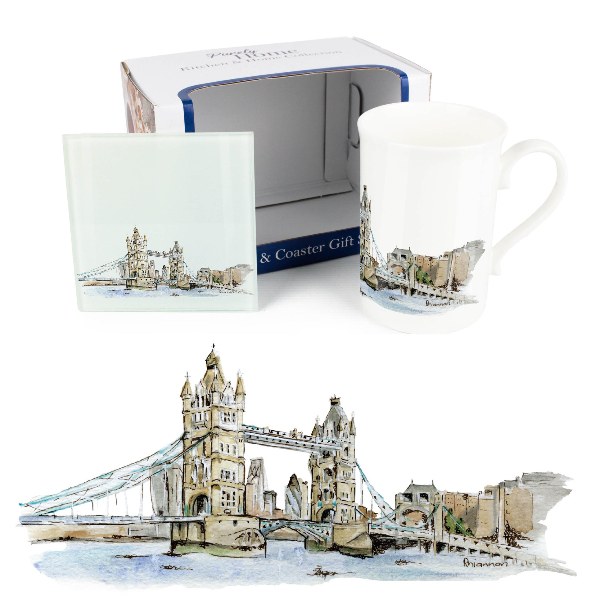 Tower Bridge Mug & Coaster Gift Set by Rhiannon Chauncey