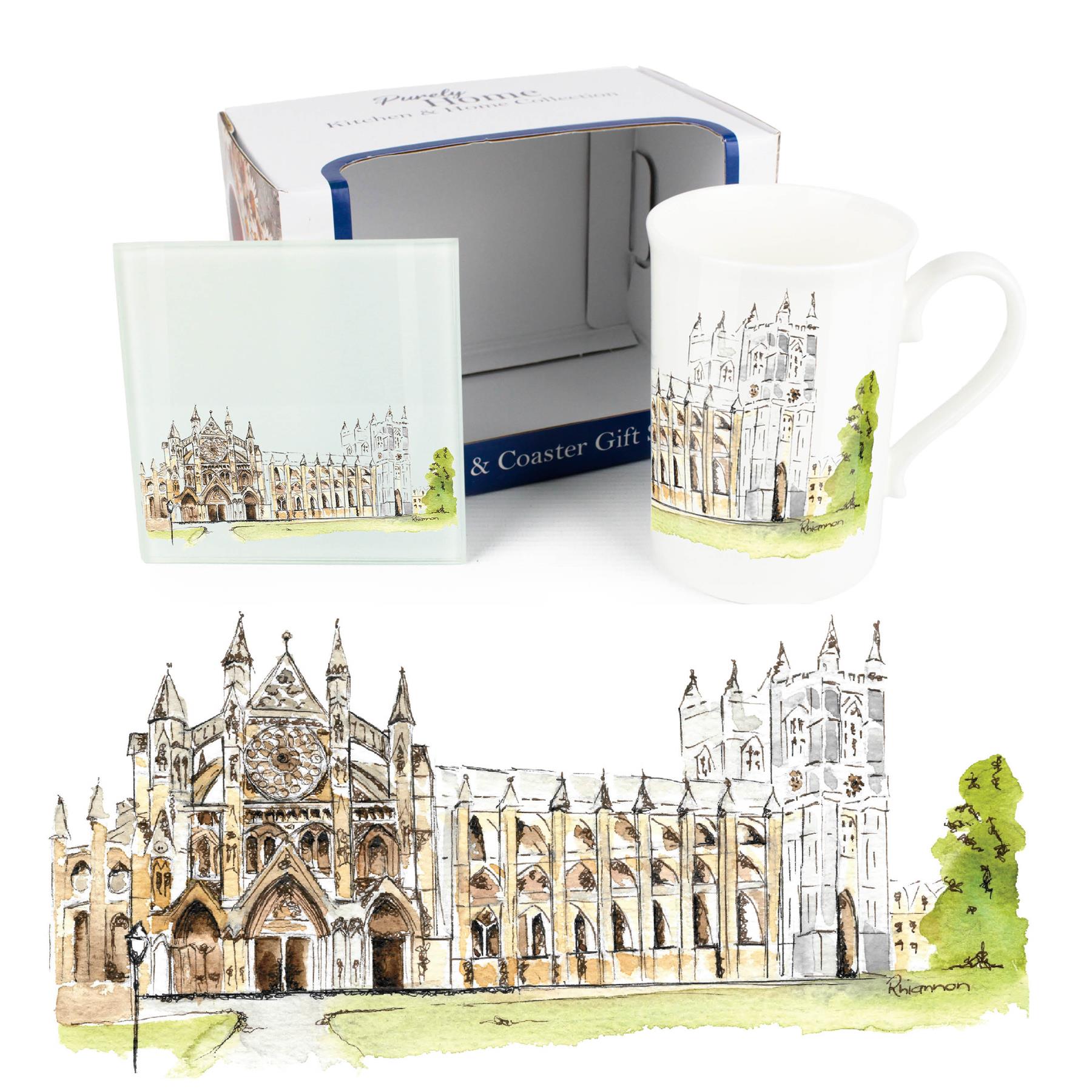 Westminster Abbey Mug & Coaster Gift Set by Rhiannon Chauncey