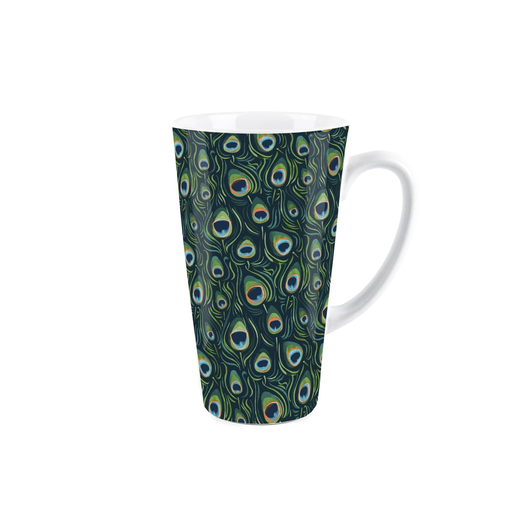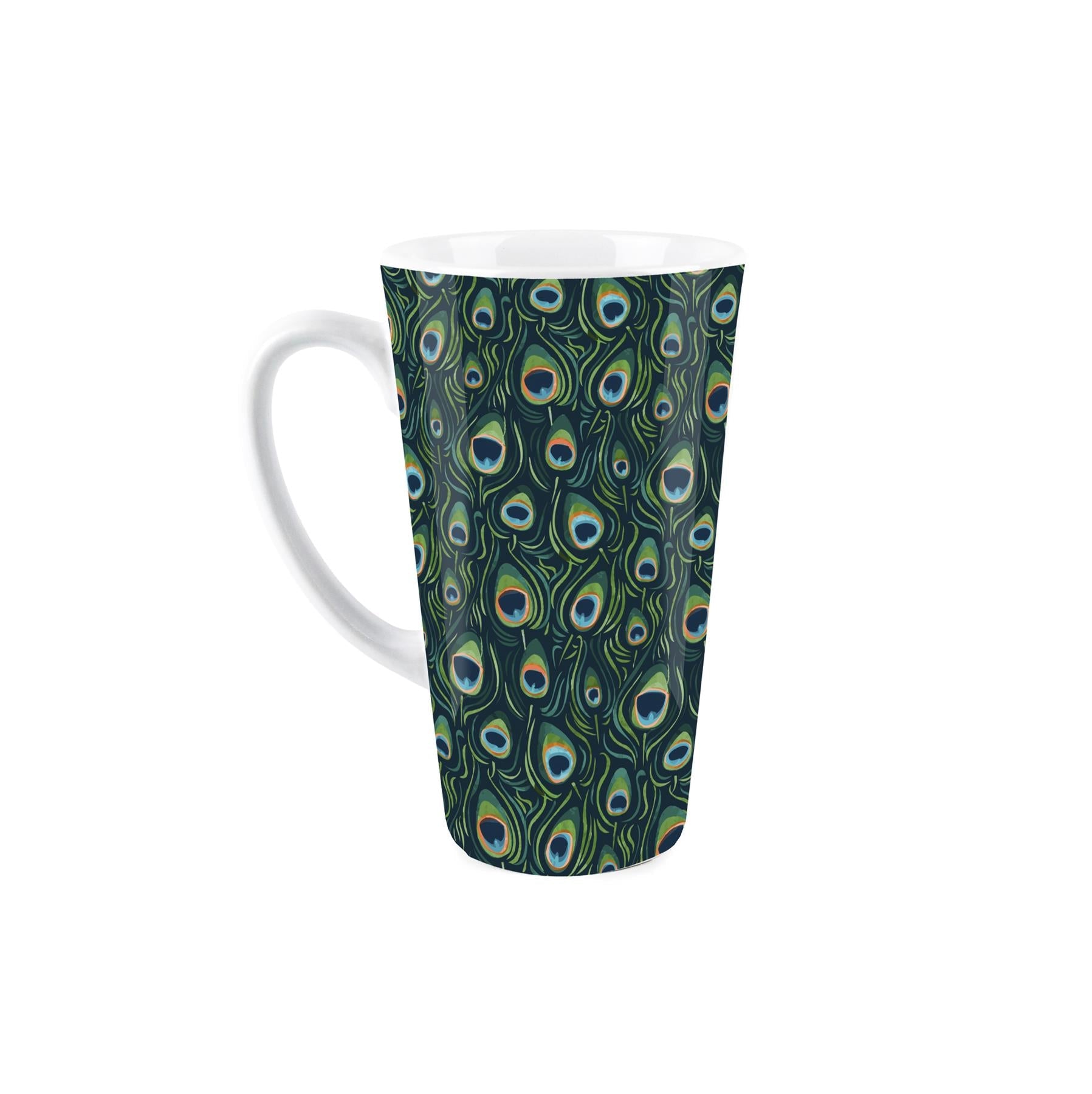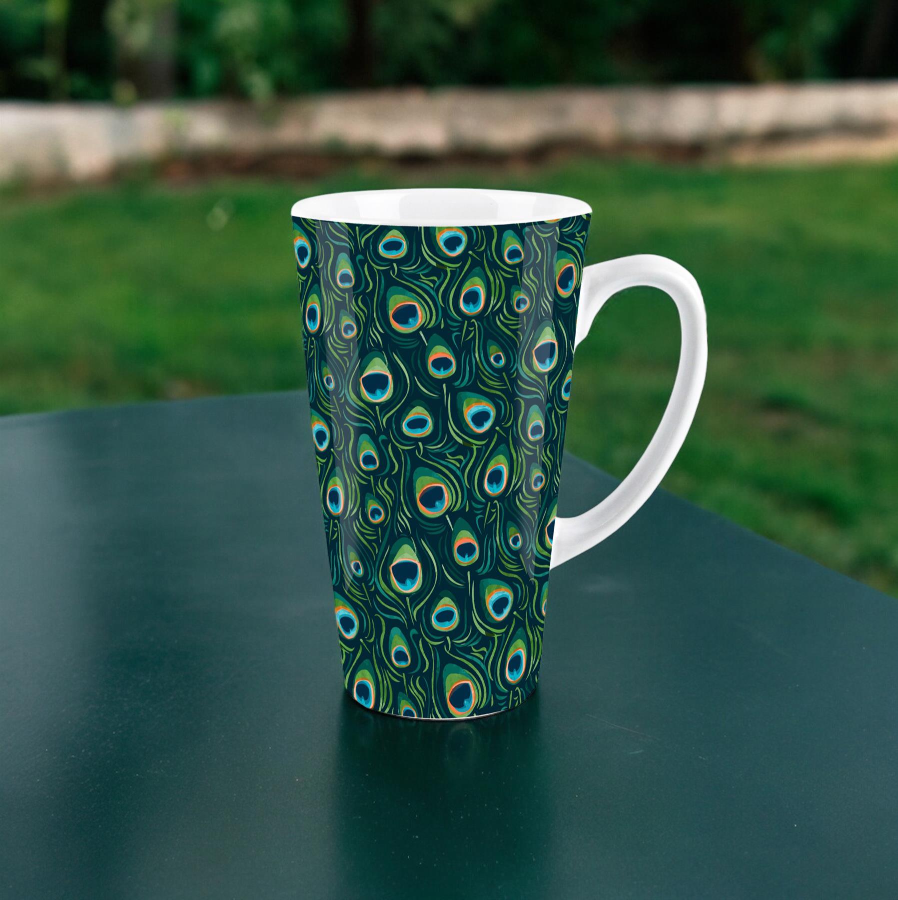 This vibrant green mug is a lovely addition to your kitchen! With a bold peacock feather print, a majestic design for aromatic lattes and rich hot chocolates.