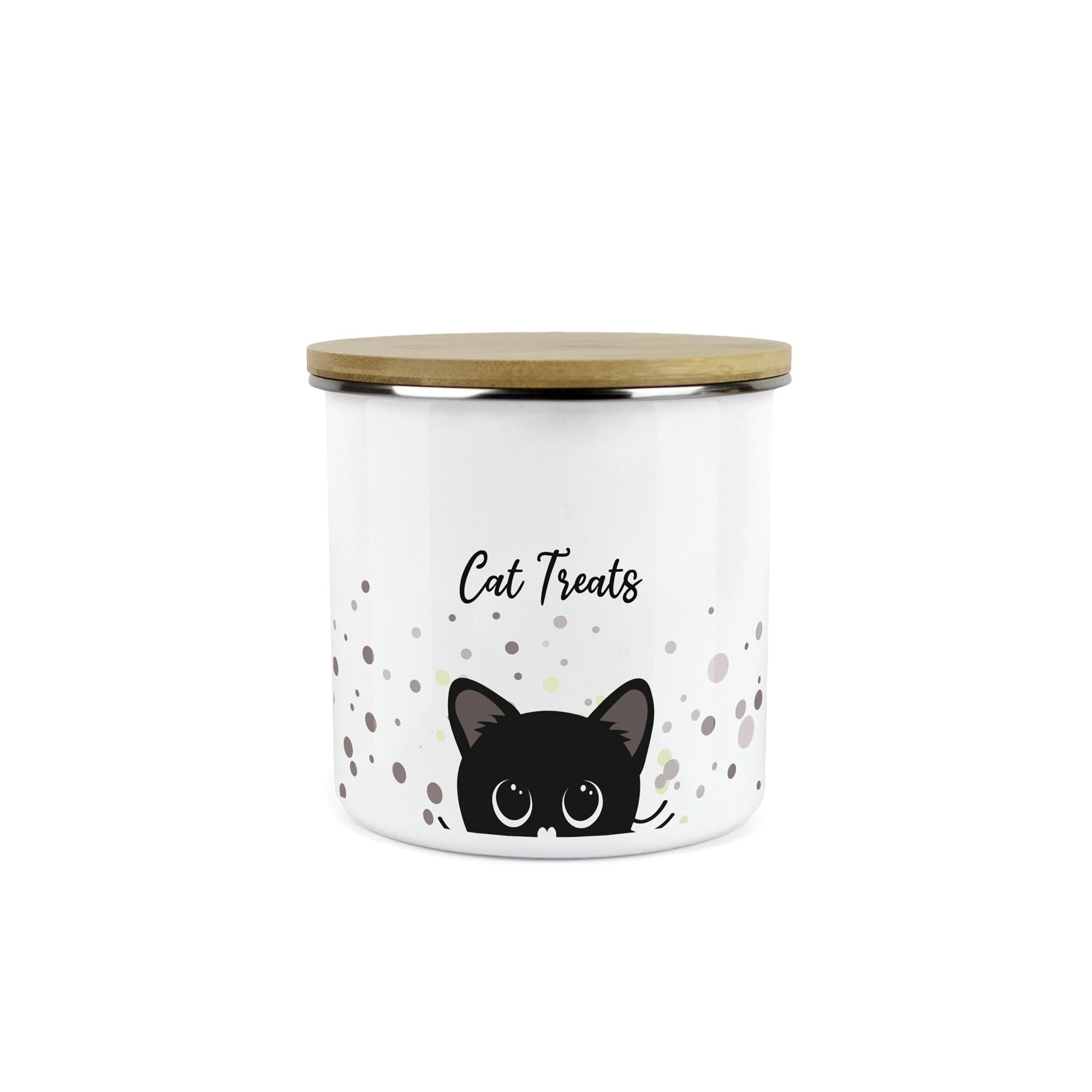 This adorable cat treat storage tin is just the thing for your purr-fectly cute feline friends! With a 'peeping' black cat design, this 600ML jar is perfect for keeping your cat treats safe from sneaky paws.