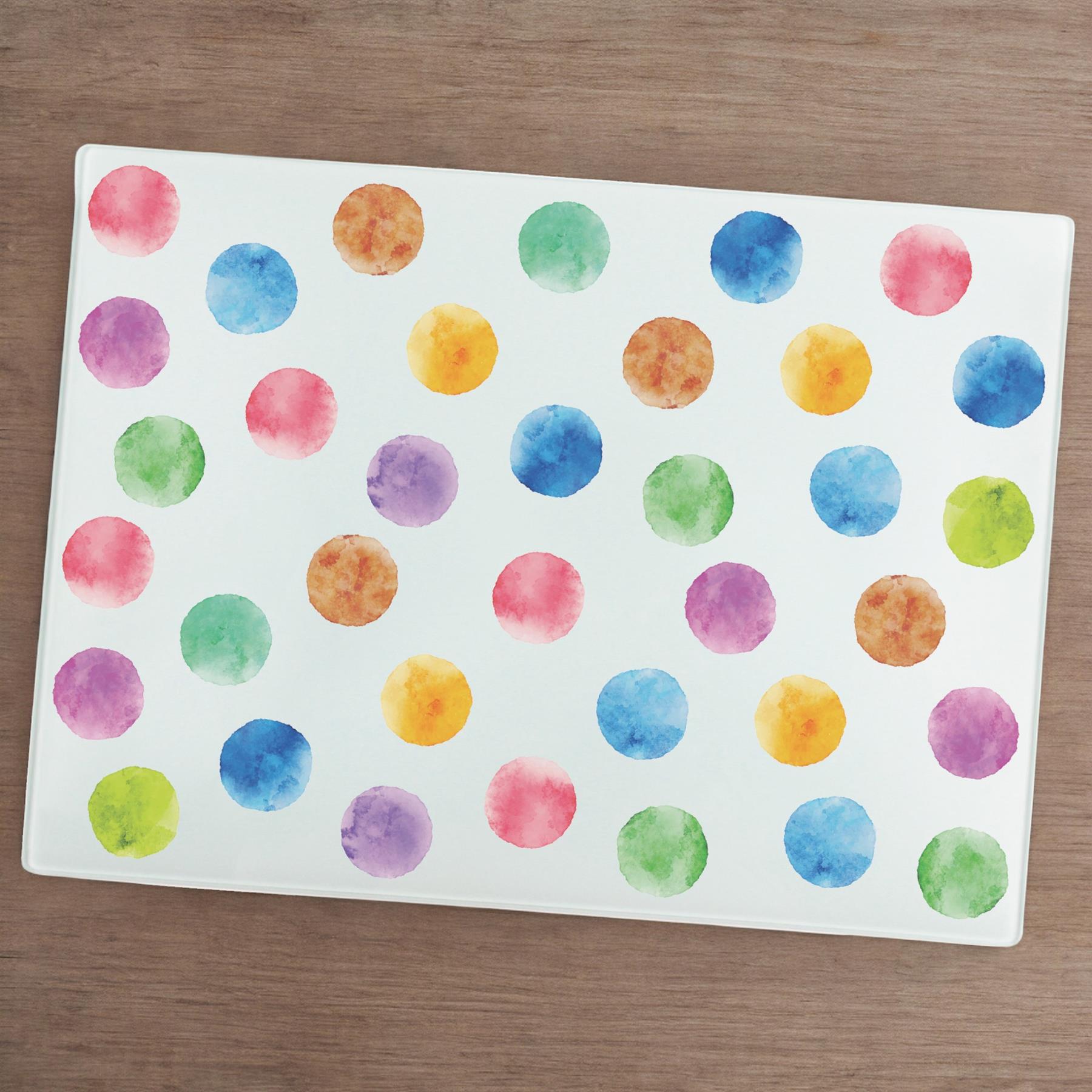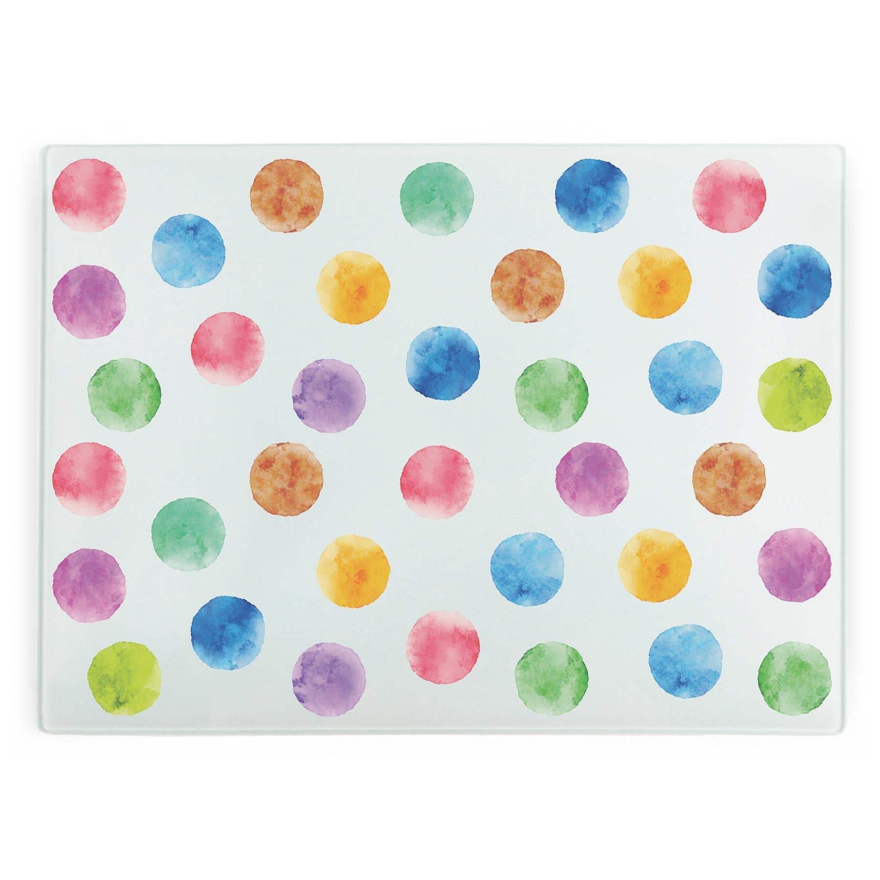 Bring the joy of a rainbow into your home with this large spotty glass worktop protector! Perfect for adding a fun splash of colour to any kitchen, this multicoloured polka dot patterned rectangular worktop saver would make a lovely housewarming gift, or a pretty, practical addition to your own home!