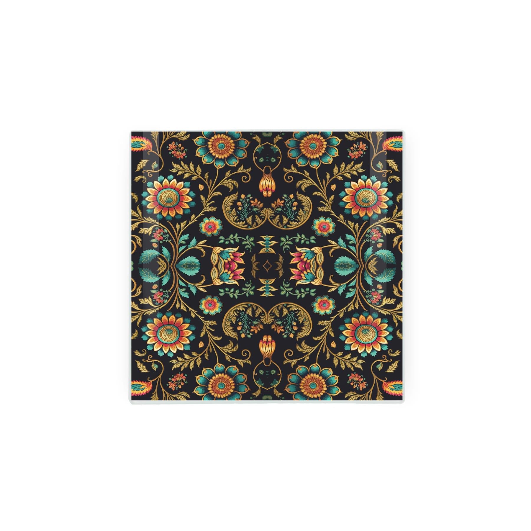 A beautiful kitchen gift for family and friends, this square glass trivet features a detailed ethnic floral design - perfect for a housewarming gift!