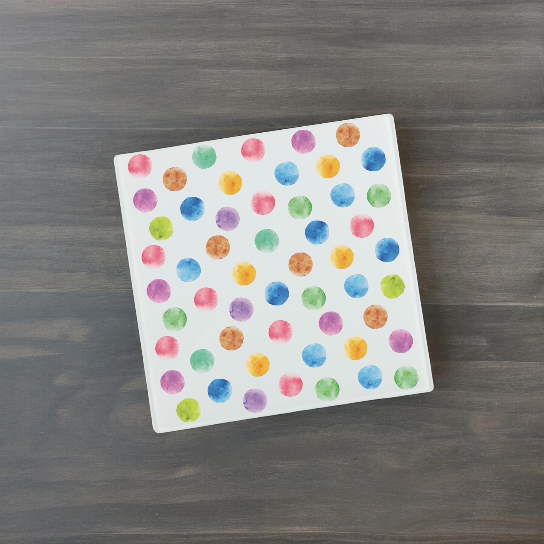 Bring the joy of a rainbow into your home with this spotty glass hot pot stand! Perfect for adding a fun pop of colour to any kitchen, this multicoloured polka dot patterned square trivet would make a lovely housewarming gift or a pretty, practical addition to your own home!