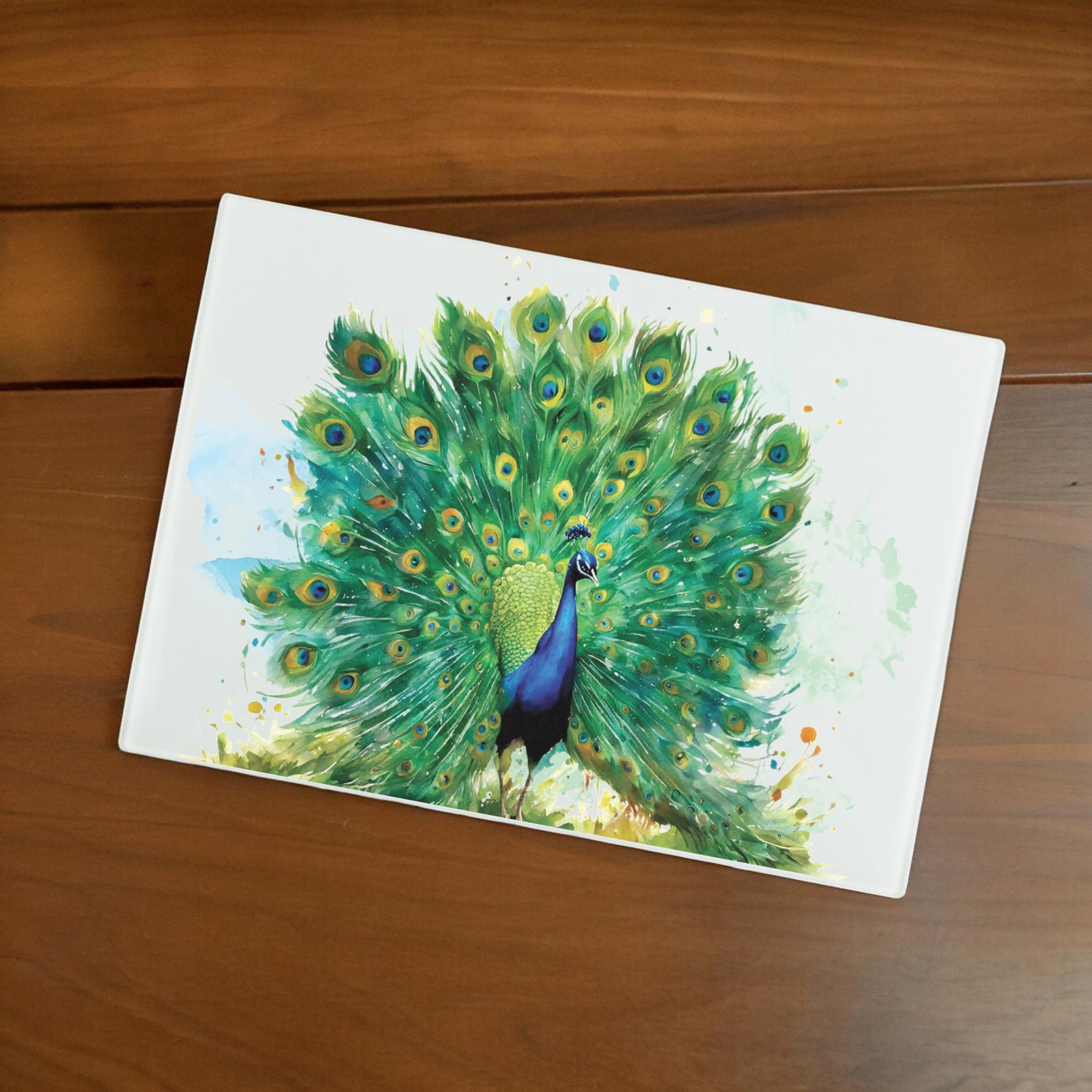 With an array of exotic colours, bring on trend style to your kitchen with this vibrant small smooth glass worktop saver! Stood proudly spreading his feathers, this majestic peacock design will be sure to catch the eye of any guest in your home. An ideal housewarming gift!