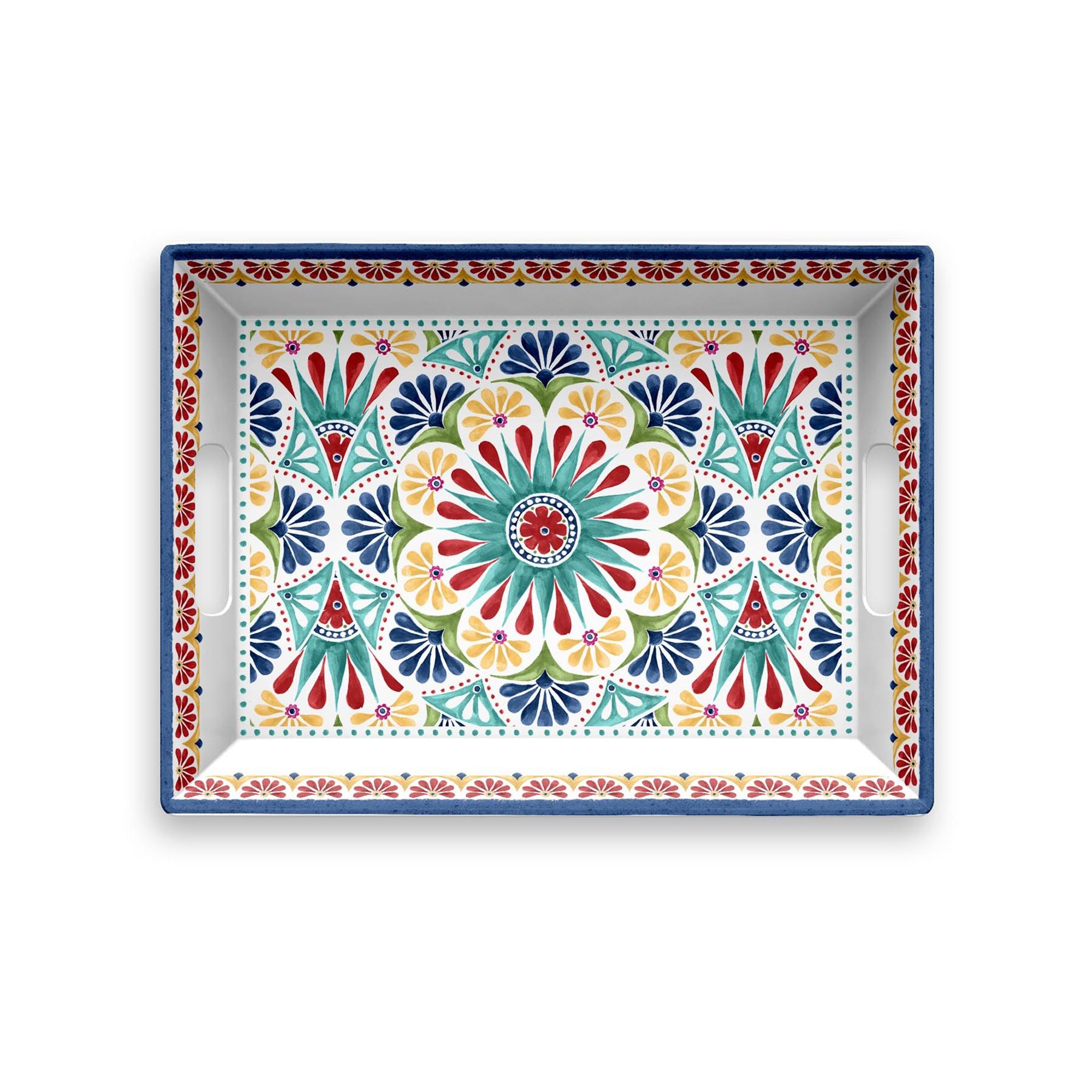 When dining outside it is always handy to have a serving tray to carry out food and drink to your friends and family. Both practical and beautiful, this Moroccan style tray is sure to stand out and bring colour to any meal time or event. With their ceramic like qualities and smooth finishing, these are easy to wipe clean and will be hard for you and your guests to even notice they are melamine! You can also use them as handy TV dinner trays for those cosy nights where you just want to relax and eat your dinner watching your favourite programme.