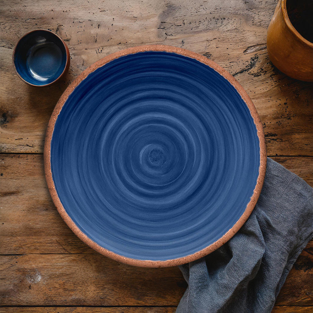Whether you are camping, enjoying a meal in your garden, or hosting a dinner party, this set of beautiful indigo swirl terracotta look dinner plates are ideal to add an earthenware, rustic aesthetic to your table. What is more, due to their rather substantial size and because they are made from durable melamine, these dinner plates can be used for nibbles and snacks or for outdoor lunches and picnics.