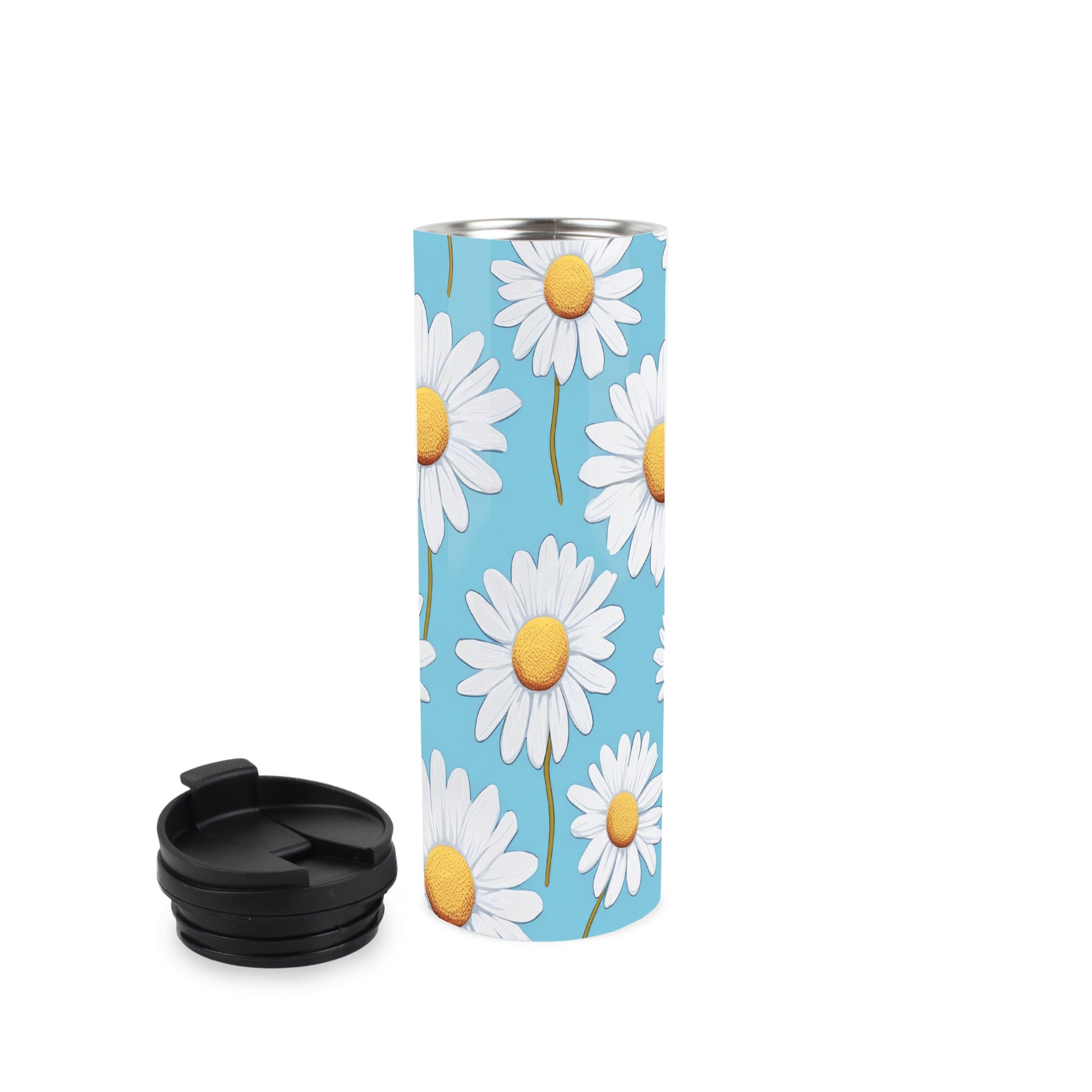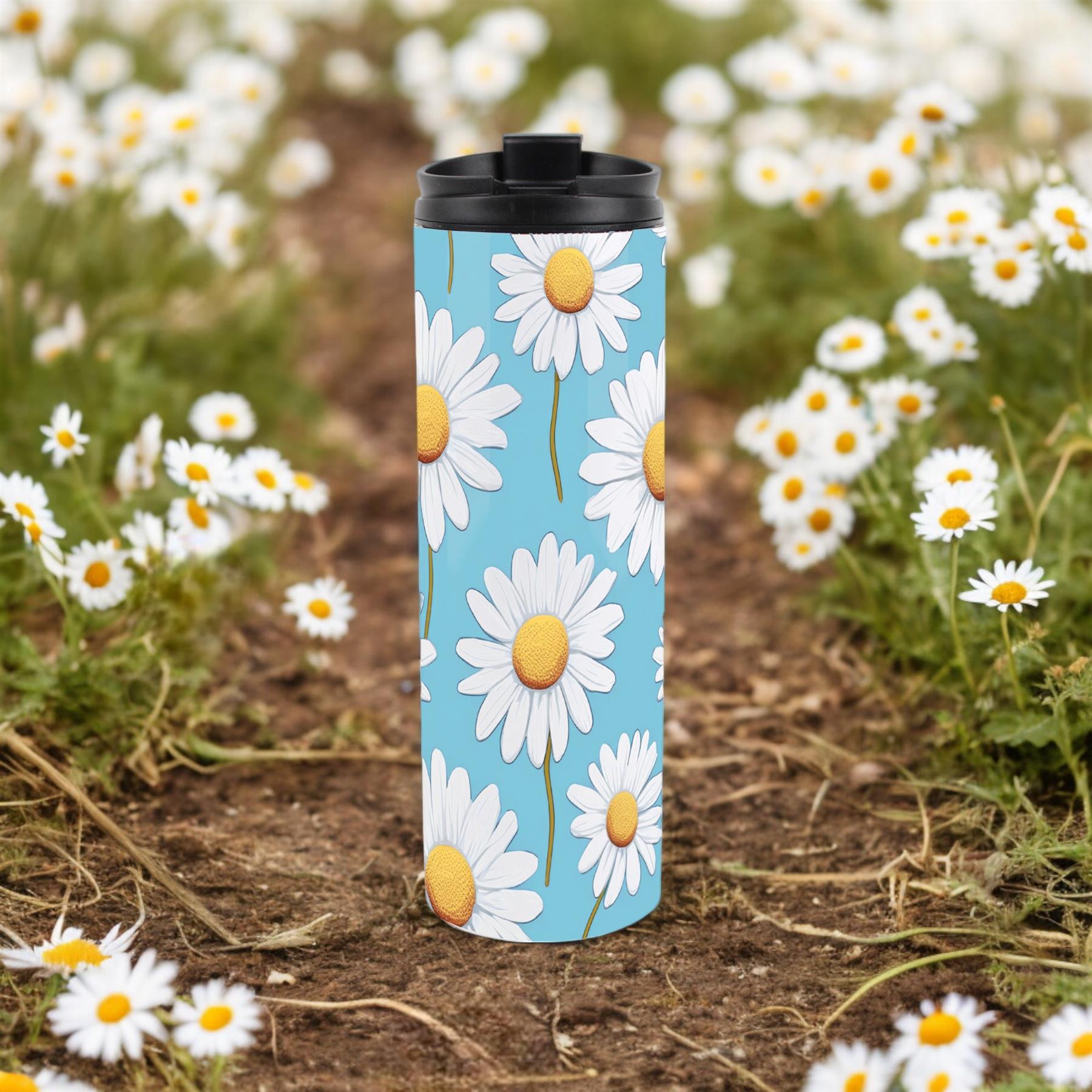 This stainless steel travel flask is the perfect gift for friends, family or yourself! With a blue floral daisy design, bring a hit of nature every time you take your travel mug with you! Perfect as a gift for yourself or for others!