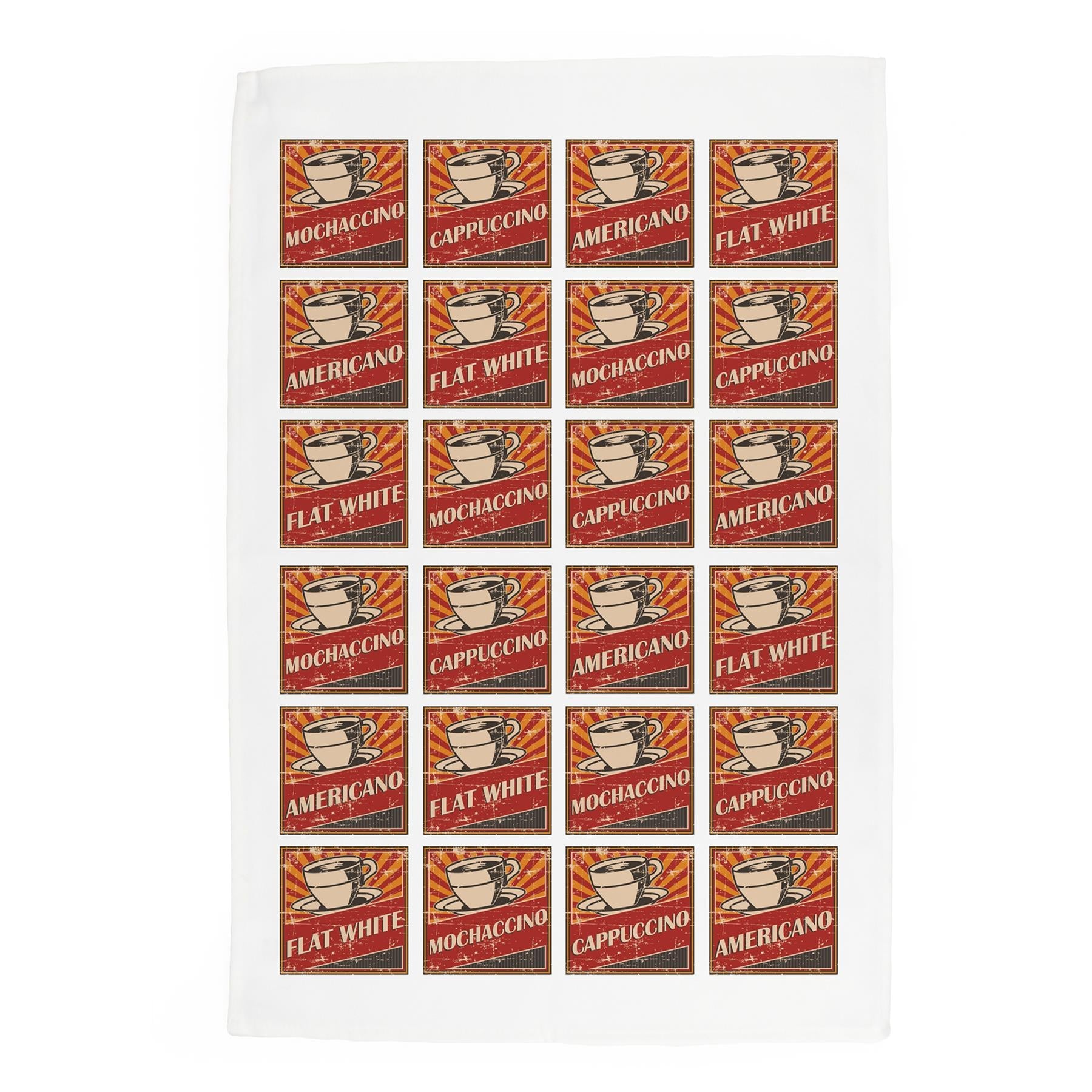 Featuring a vintage 1950's diner inspired print, this tea towel is ideal for bringing a bygone era to your kitchen décor! Covered in retro coffee-themed posters, this delightful kitchen linen is perfect for drying dishes, cleaning spills, or just for display!