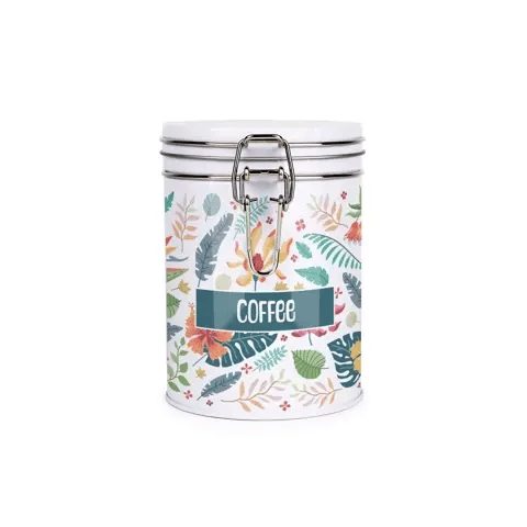 Add a subtle touch of botanical, jungle vibes to your kitchen with this lovely tropical flowers coffee canister! With a colourful leaf design printed onto a white background, with a useful clip-top lid, this hot drinks storage container makes an ideal housewarming gift!