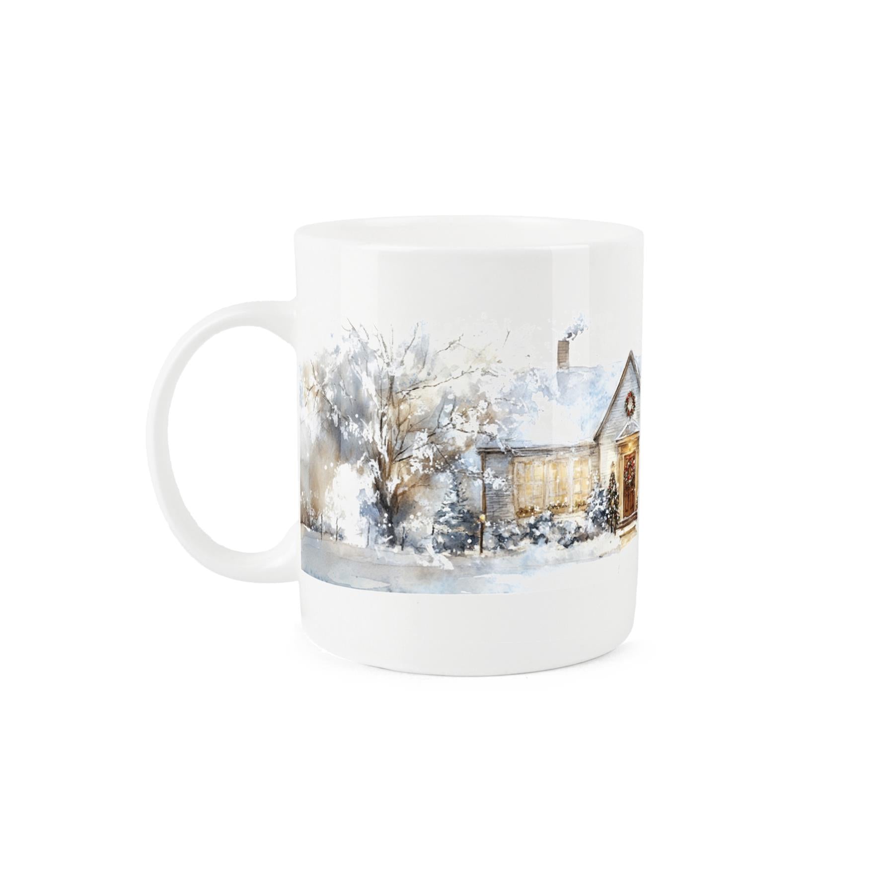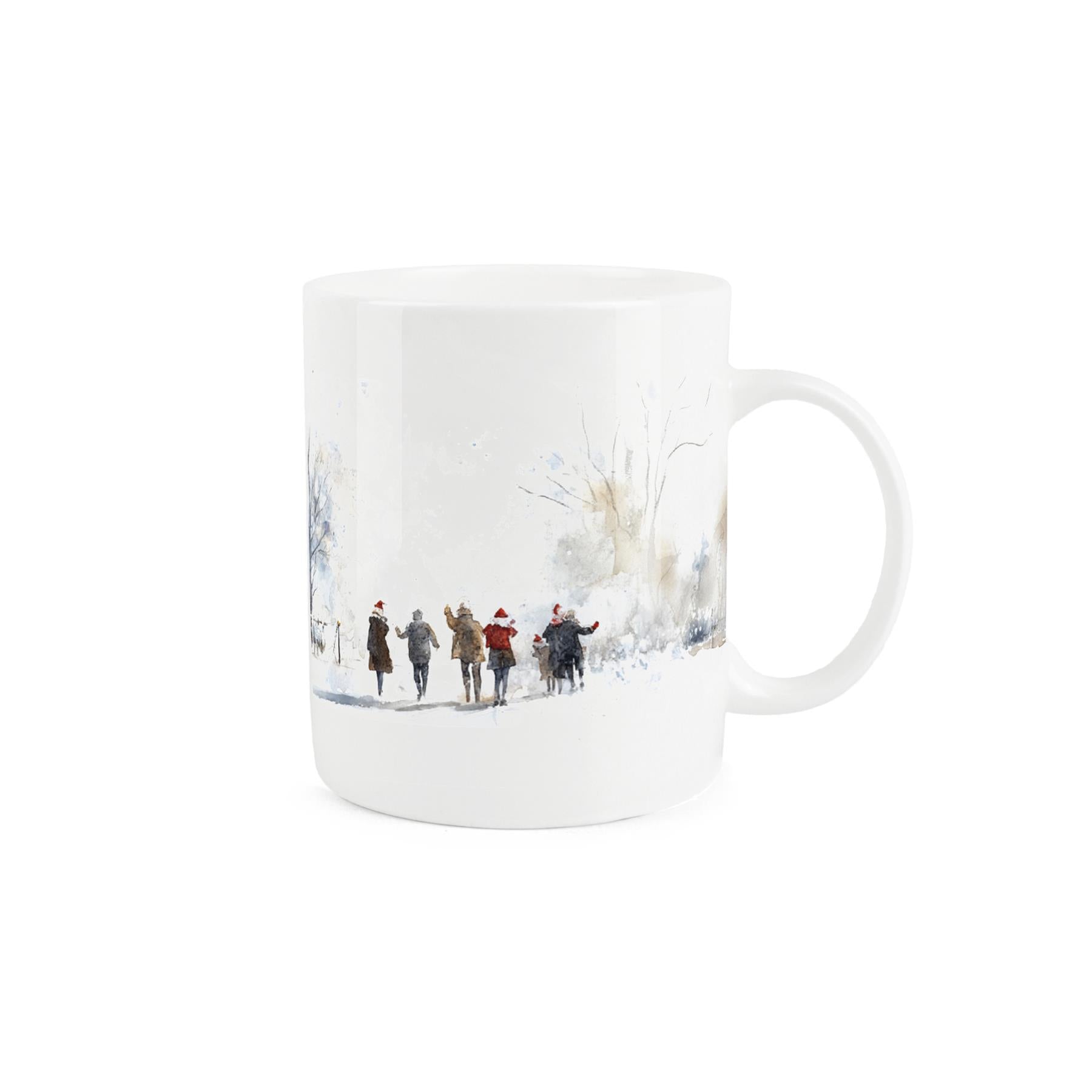 This lovely bone china mug features an illustrated scene of a welcoming home amongst the wintery trees & snow, with a family on their way out for a festive, Christmas day walk! A perfect gift for those who love the most wonderful time of the year.